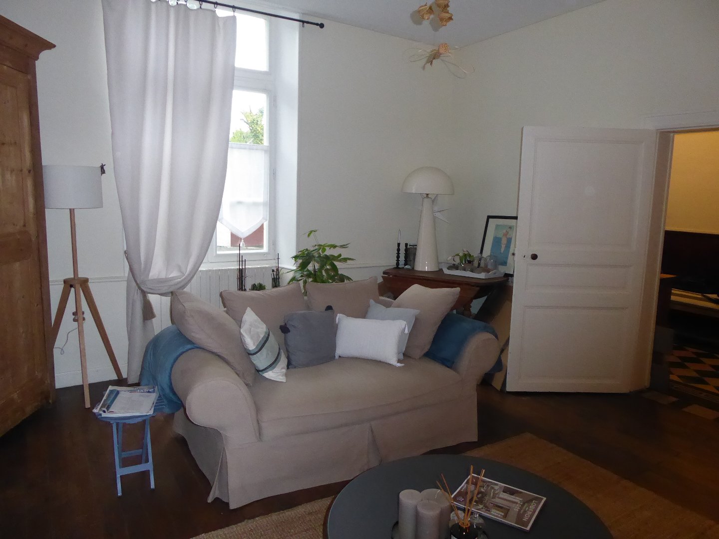 Maison totalement rénovée de 177 m² à louer. Elle se compose au rez-de-chaussée d'une entrée avec placard, d'une cuisine aménagée et équipée avec cheminée, d'un salon/séjour lumineux avec cheminée également, ainsi que d'un WC indépendant. À...