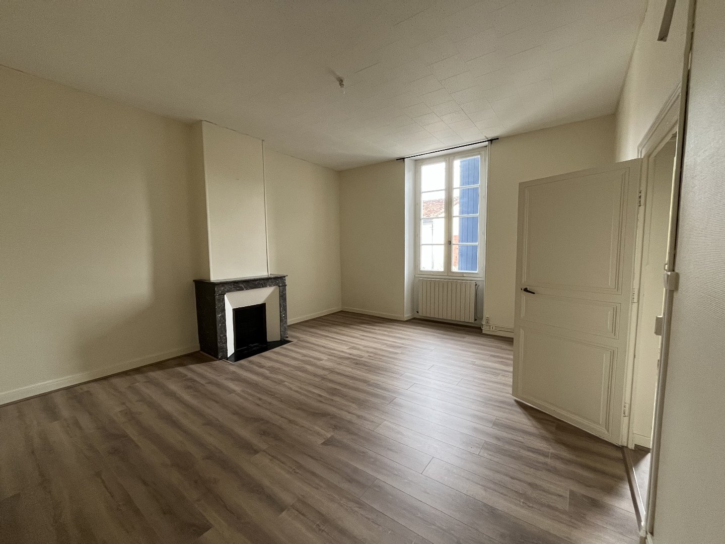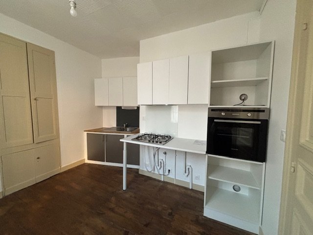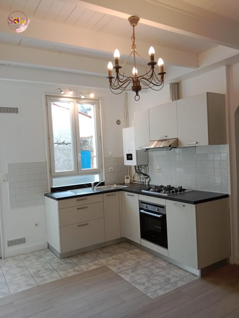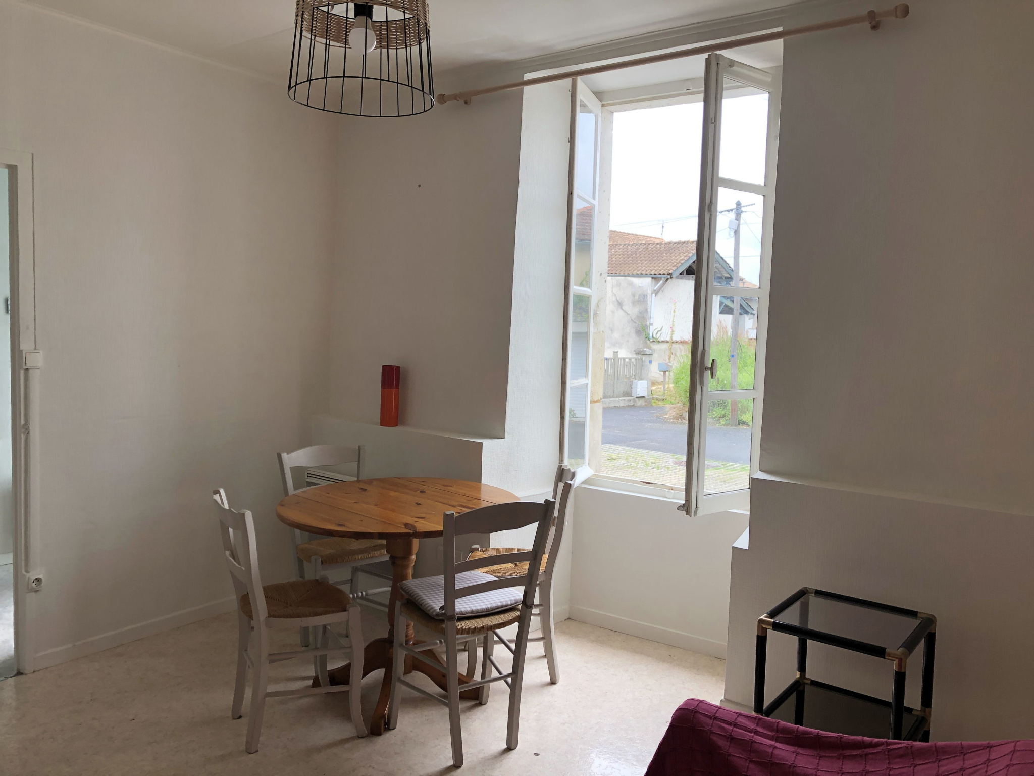 Libre de suite - Maison de ville de type 3 située rue Véron à Cognac comprenant au rez-de-chaussée un séjour, une chambre, une cuisine aménagée et équipée (four, plaque et hotte) et des toilettes. Le premier étage comprend une seconde chambre et une salle d...