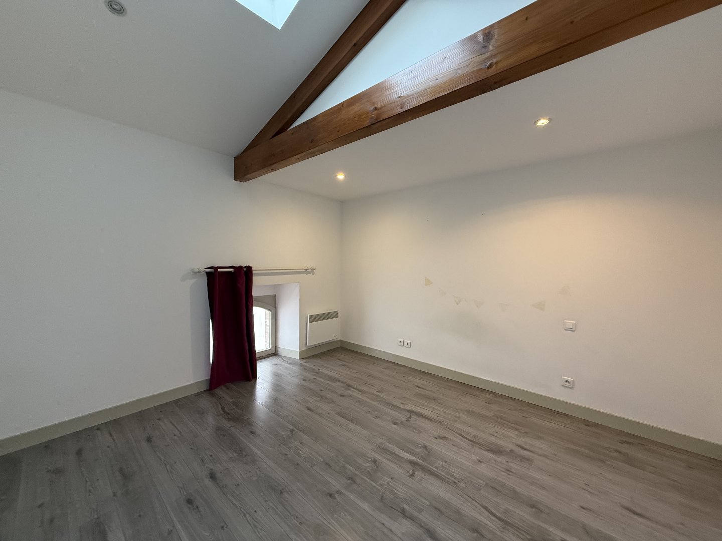 Beaux volumes pour cette maison bourgeoise entièrement rénovée comprenant en-rez-de chaussée une entrée, une cuisine aménagée, une salle d'eau avec WC, un cellier, un séjour et à l'étage : 2 grandes chambres et un bureau.