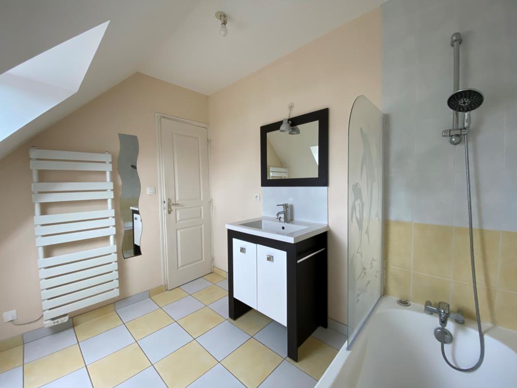 Maison dans un quartier très calme comprenant: une entrée par un grand séjour ouvert sur la cuisine meublée et équipée de plaques et hotte, un wc avec lave-mains et acces direct au garage; à l'étage un palier désservant 3 chambres dont 2 avec placard et u...