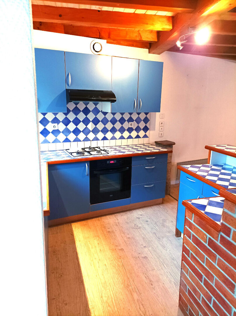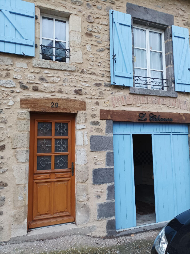 Maison de bourg en pierres avec terrasse et garage.