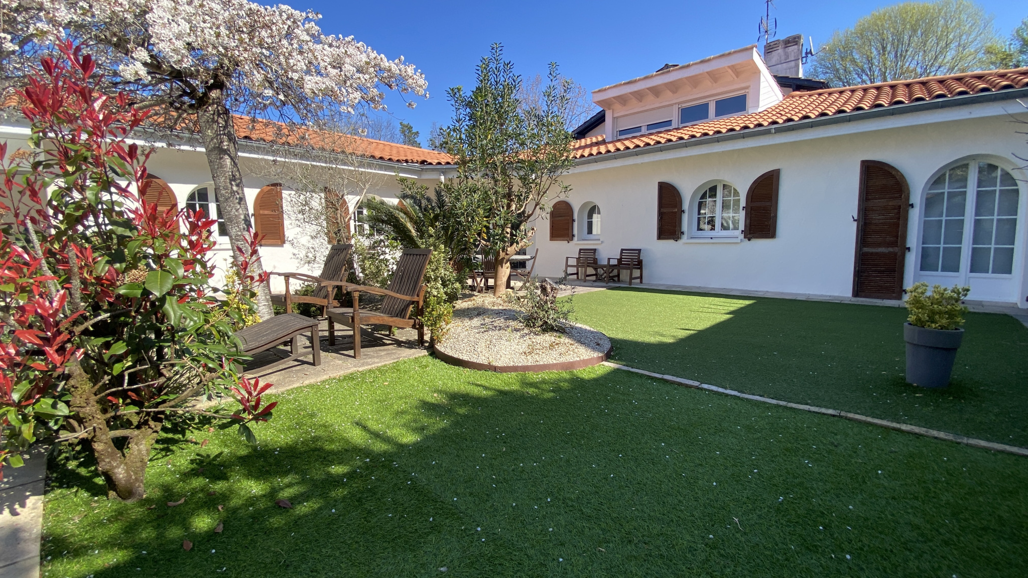 Située à proximité immédiate du golf de la Nivelle et des commerces, cette maison partiellement de plain-pied se compose d'un vaste séjour avec cuisine américaine aménagée et équipée, ouvrant sur le jardin, la piscine et le salon d'été. Elle offre de...
