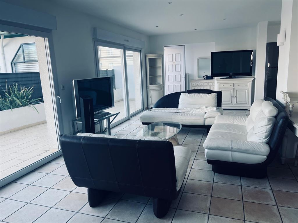 Elle se compose d'une entrée avec placard - d'un cuisine semi-équipée (four - plaque de cuisson - hotte) ouverte sur séjour et donnant sur la terrasse - de deux chambres ...