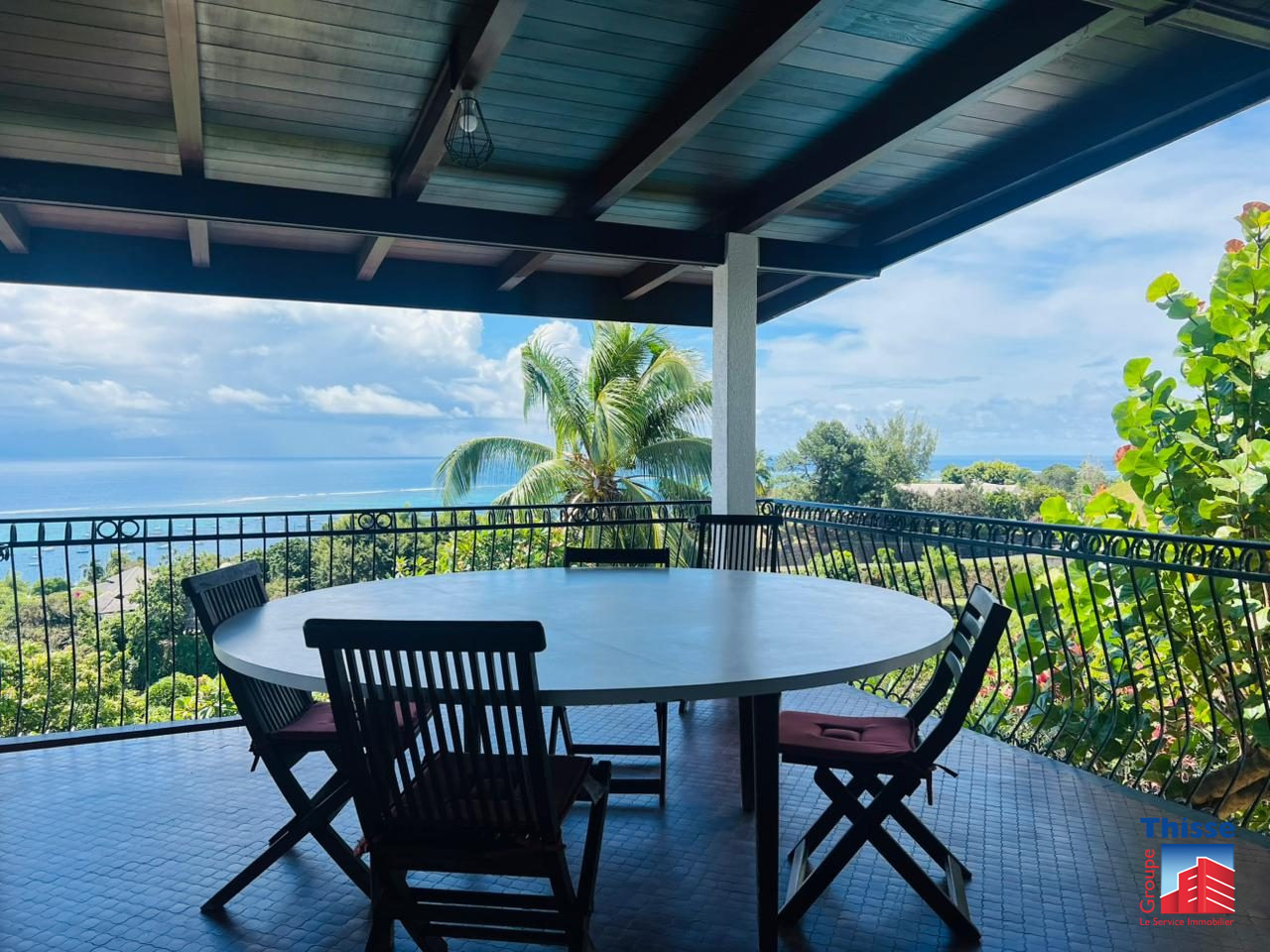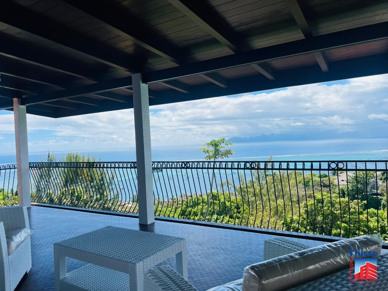 Au sein d'un lotissement calme avec une vue panoramique sur Moorea sur un terrain de 2127m2 début punaauia, belle villa F9 comprenant 7 chambres, 3 bureaux, 5 salles d'eau, une cuisine aménagée, un grand salon, une buanderie et une dépendance (bungal...