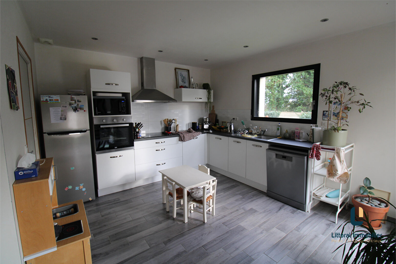 Plage, commerces et écoles à pied! De beaux volumes pour cette maison contemporaine comprenant: cuisine indépendante aménagée, salon séjour donnant sur terrasse, chambre avec salle d'eau privative et wc. A l'étage: palier, 3 chambres et salle de bain...