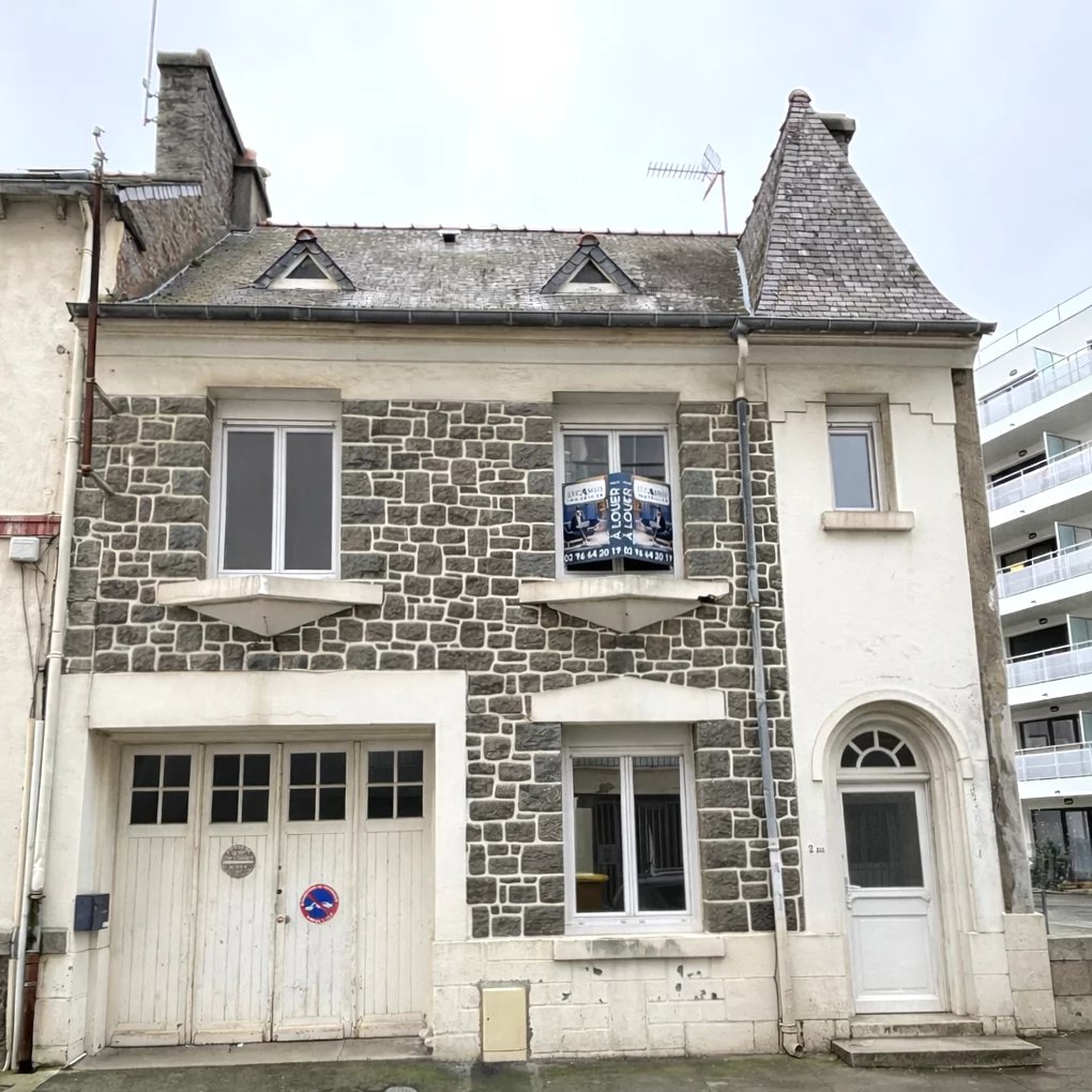 ST BRIEUC, entre la gare et le centre ville, maison de ville 5 P. totalement rénovée comprenant : entrée, séjour salon, cuisine équipée ouvrant sur une cour clos de murs et parfaitement exposée, 3 chambres, véranda, salle de bains, WC., garage