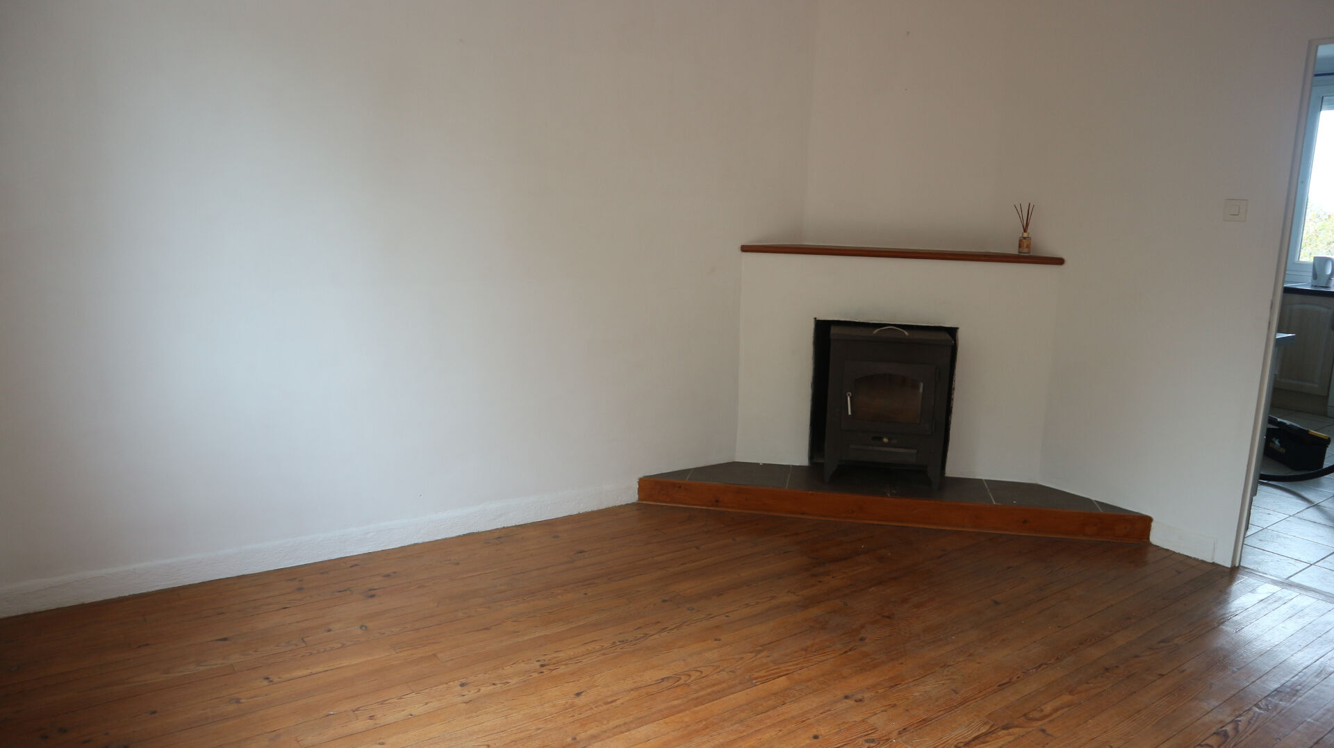 1er ETAGE : palier, cuisine aménagée et équipée (évier, plaque de cuisson, hotte, ensemble de placards), séjour avec un poèle à bois, salon, 1 chambre, salle de bains avec wc