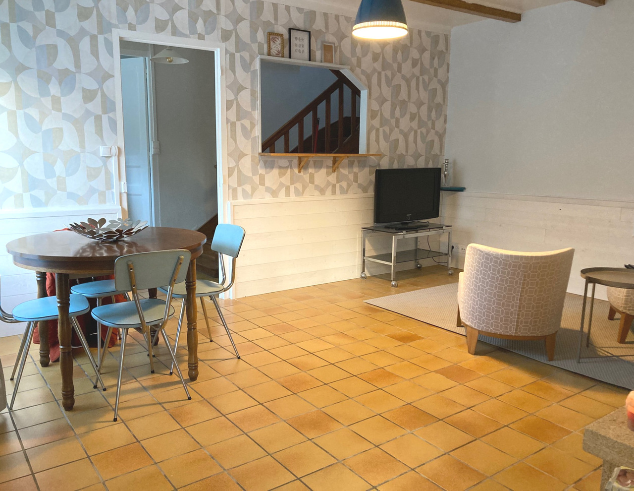 À louer chez Christelle Mesnage - LA LANDEC, LOCATION MEUBLÉE - Charmante maison en pierre totalement rénovée comprenant une entrée, une cuisine équipée ouverte sur le séjour, un wc, une salle d'eau et 3 chambres. Une place de stationnement à l'avant...