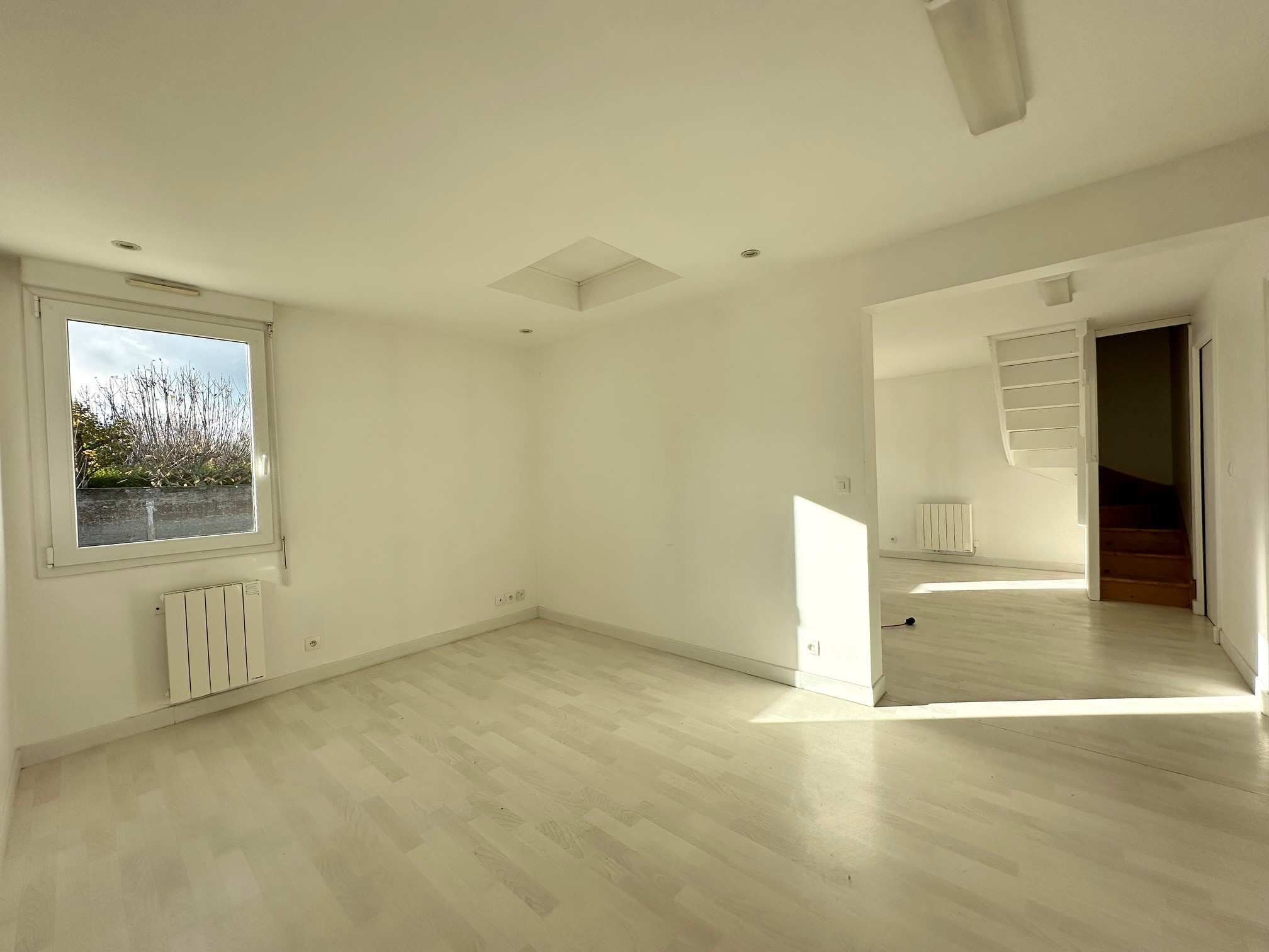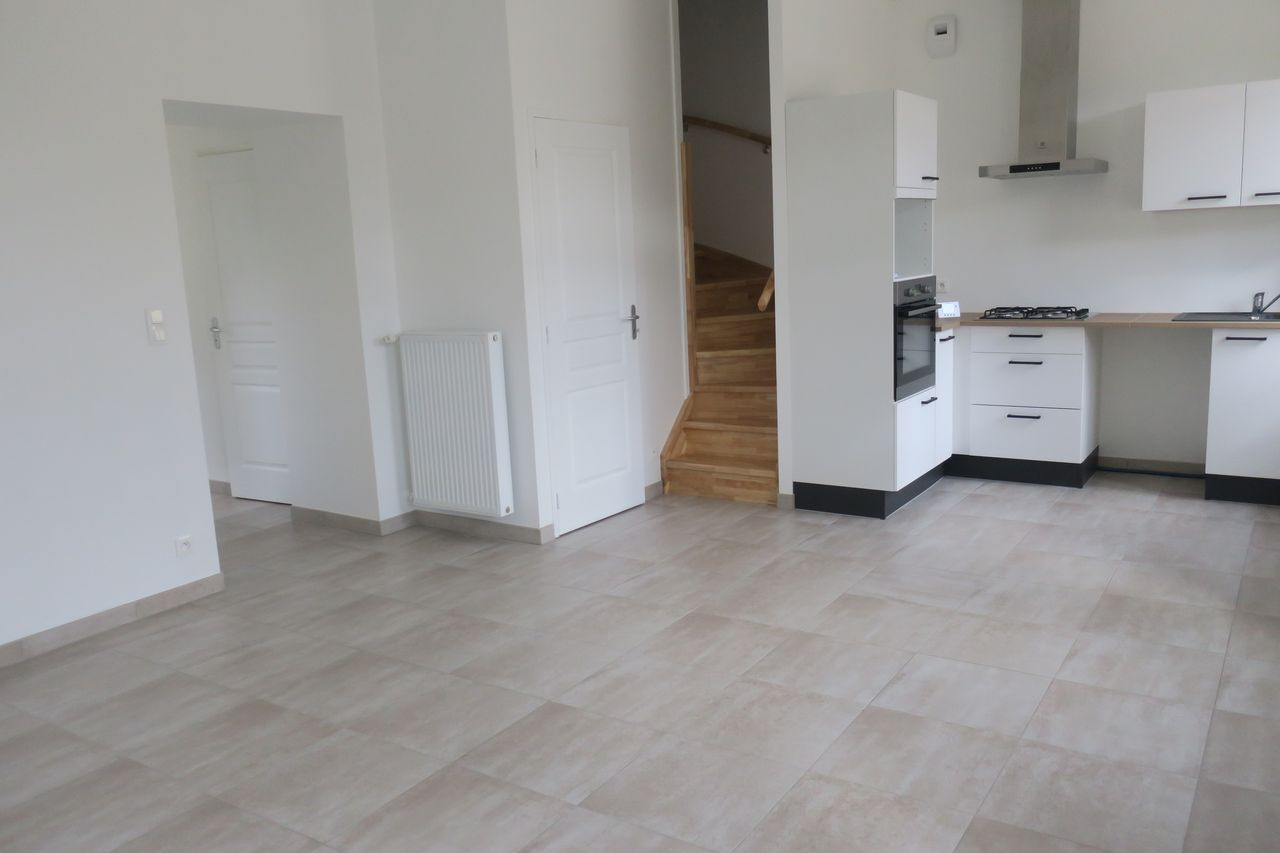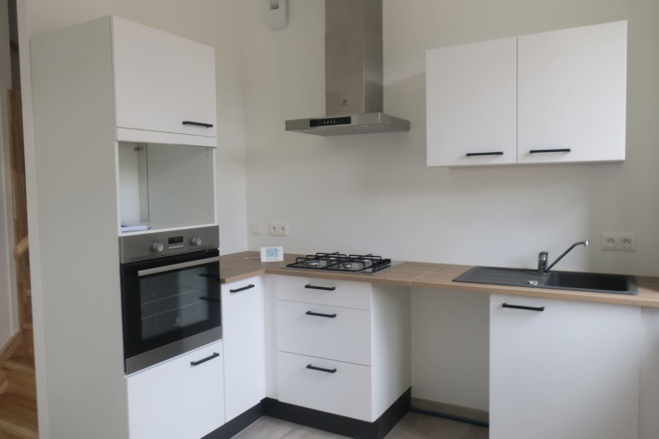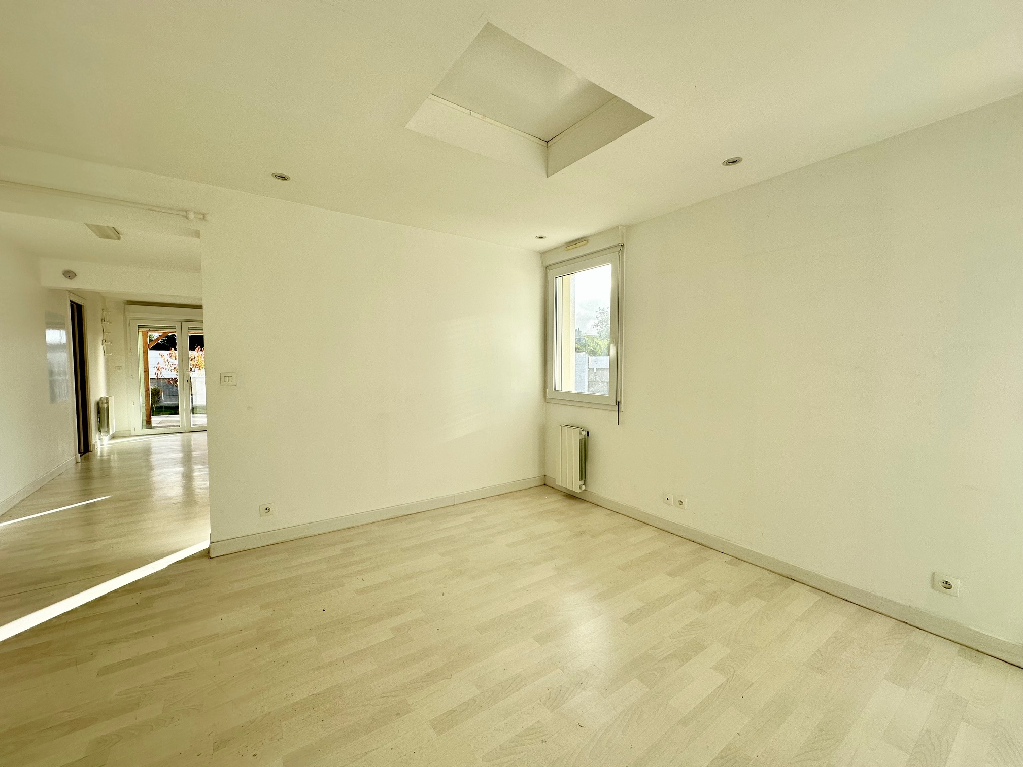 Maison avec une courette à l'avant et à l'arrière comprenant au rez-de-chaussée, un séjour coin cuisine aménagée et équipée (plaque à induction, hotte, four), une salle de bains avec wc. Buanderie. A l'étage : 2 chambres, un bureau , wc. Garage....