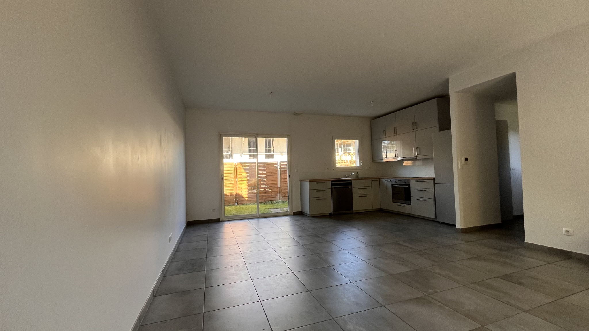 CRAPONNE centre (5 bis rue jean Baptiste Fayolle, au calme, villa T4 MEUBLEE de 86,56 m2 très lumineuse, élevée sur 2 niveaux et bénéficiant d'un jardin clos et arboré d'environ 100m2 . Au RDC : salon-SAM carrelé avec cuisine US carrelée équipée (pla...