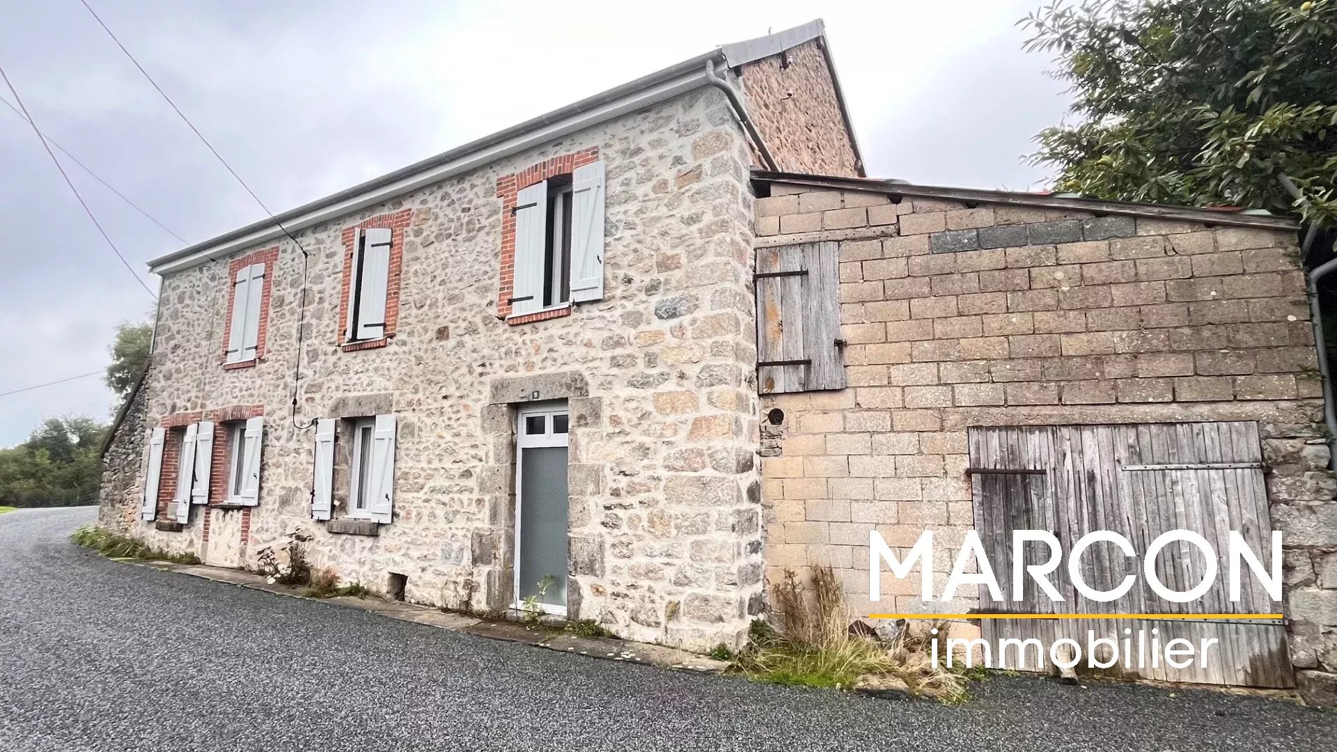 MARCON IMMOBILIER - CREUSE EN LIMOUSIN REF 1355 - Marcon Immobilier LA SOUTERRAINE vous propose cette maison de ville de 60 m², composée au rez-de-chaussée d'une pièce de vie avec coin cuisine, un dégagement, un WC et une courette de 8m2.