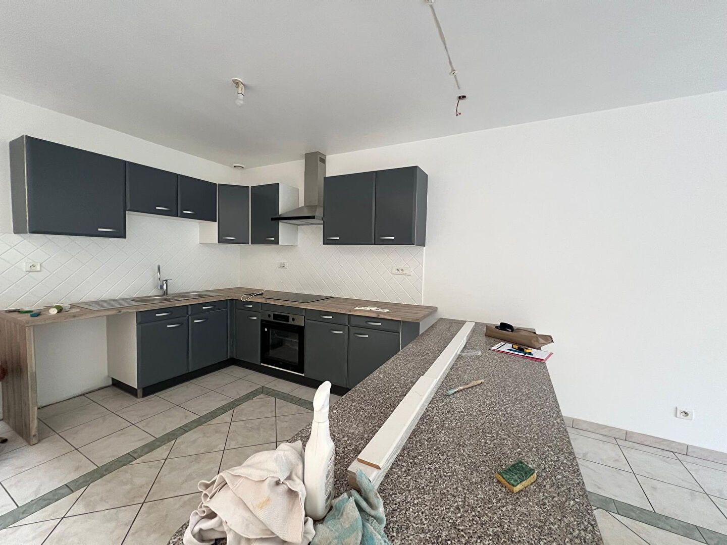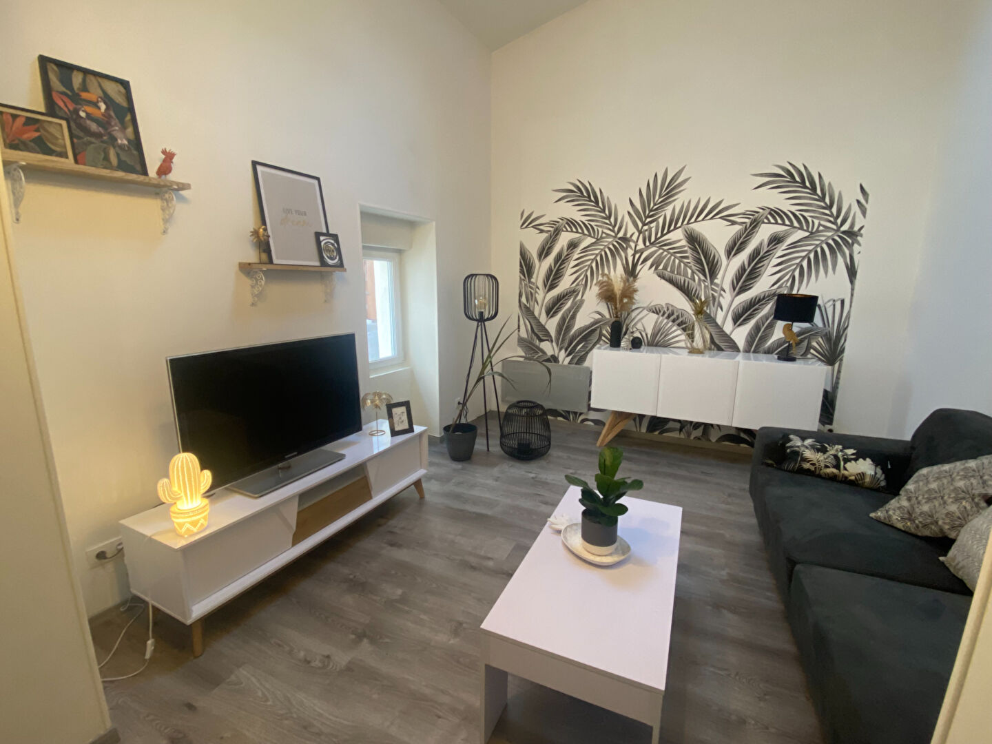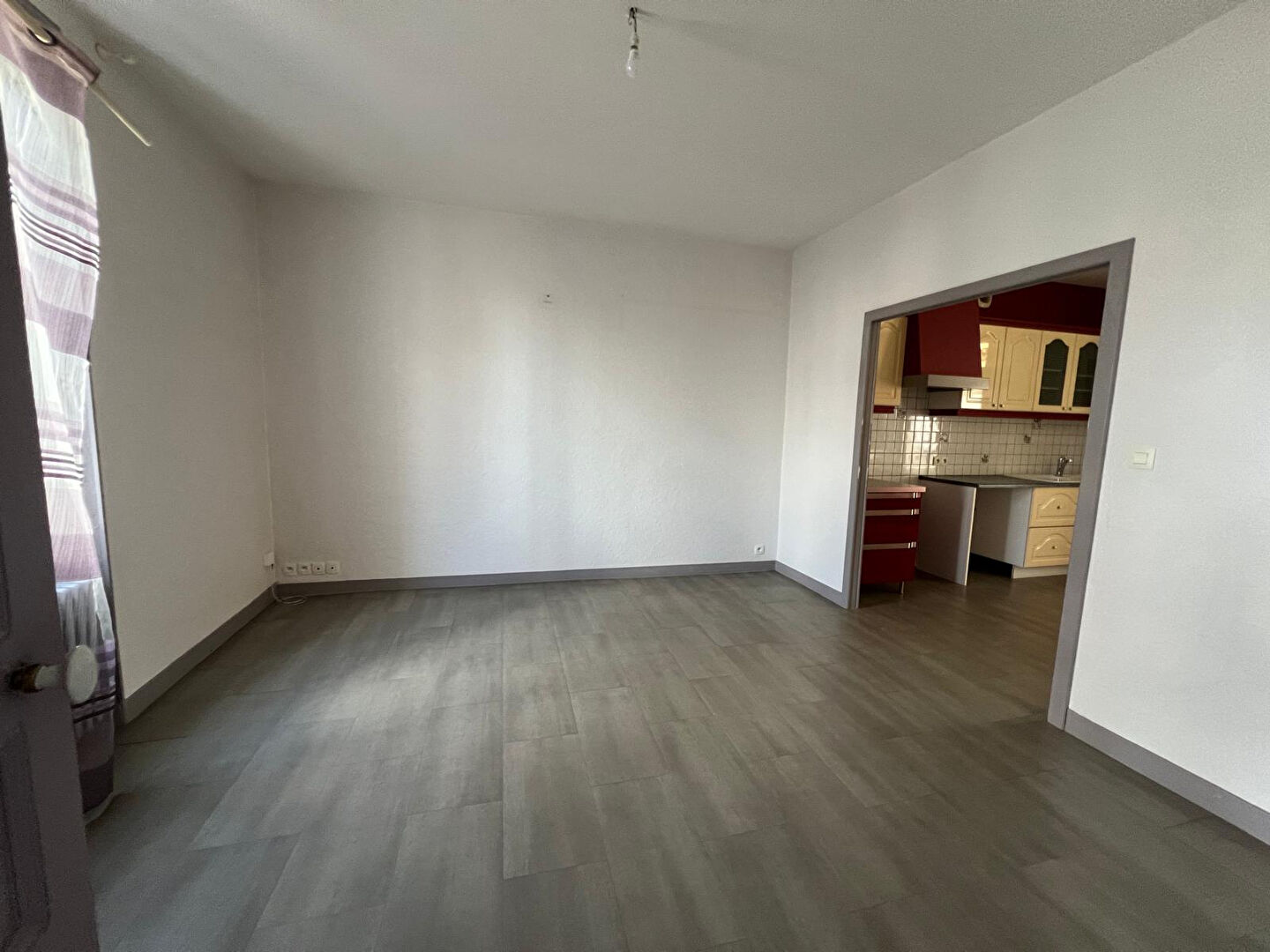 Maison T2 dans un quartier calme comprenant une cuisine ouverte sur la pièce de vie qui a été entièrement repeinte, un cellier, une chambre, une salle d'eau avec WC.