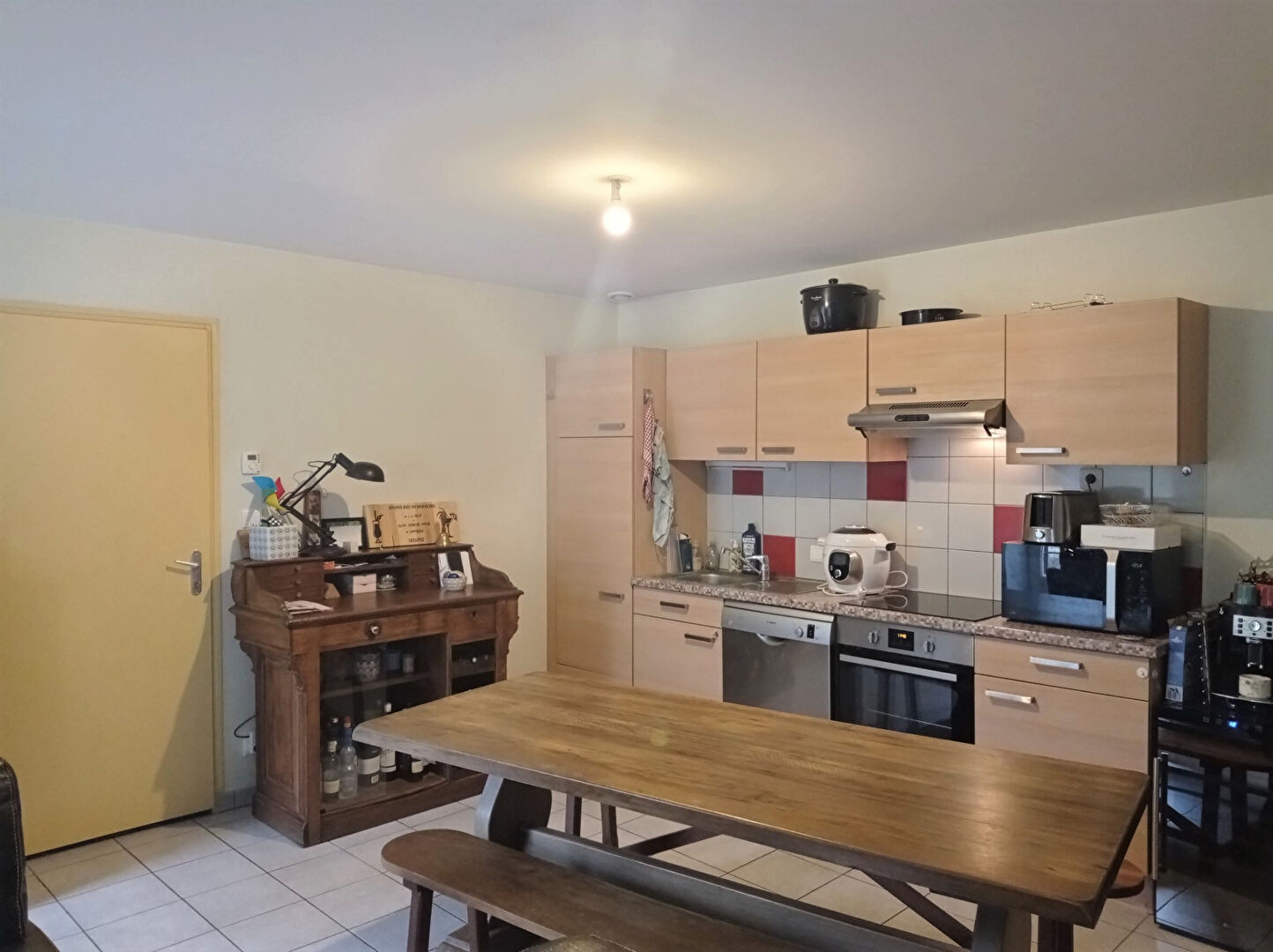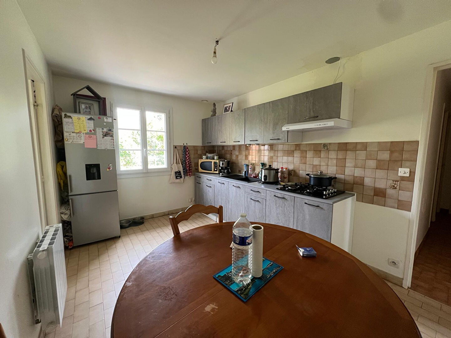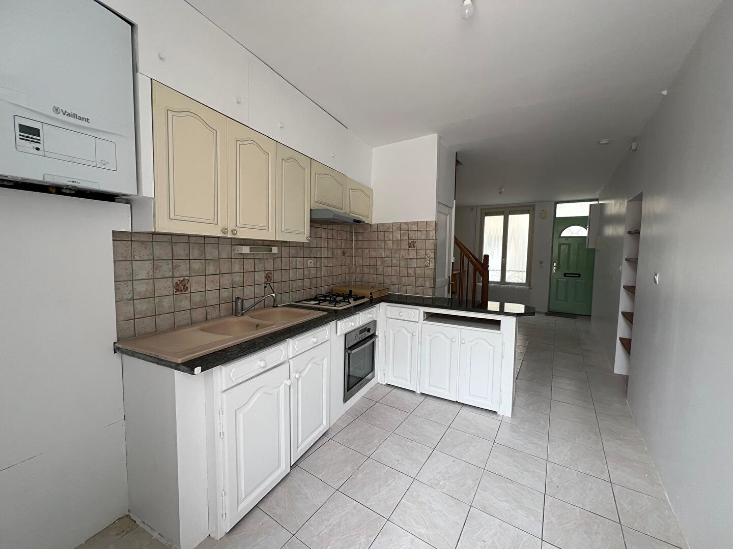 A 5 minutes à pied de la place de la brèche, cette charmante maison de ville meublée offre entrée sur la cuisine qui est aménagée et équipée avec plaque, hotte, four, réfrigérateur, lave linge.