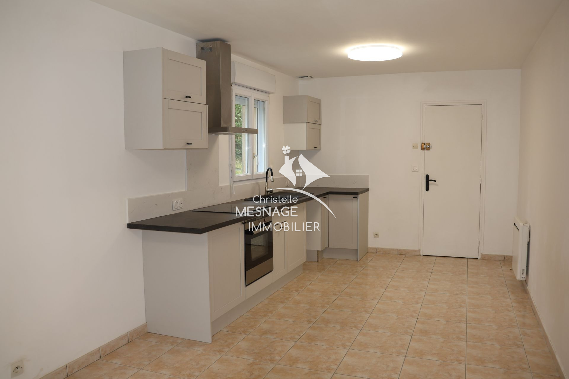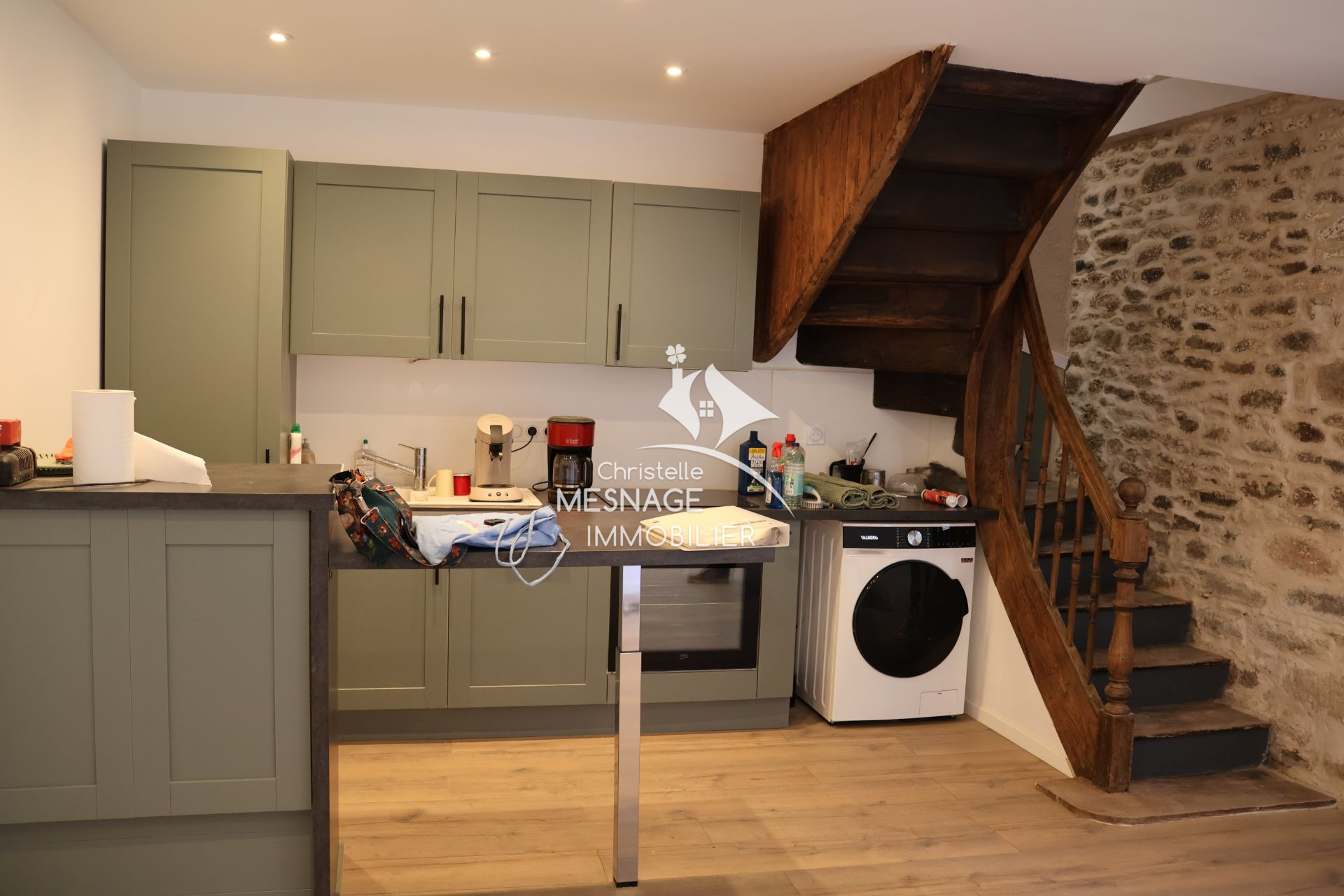 À louer chez Christelle Mesnage, DINAN centre-ville - Belle maison en pierre de 55m², totalement refaite à neuf, offrant : une cuisine équipée ouverte sur le séjour au rez-de-chaussée, une chambre avec salle d'eau et wc au 1er étage, une chambre avec pout...