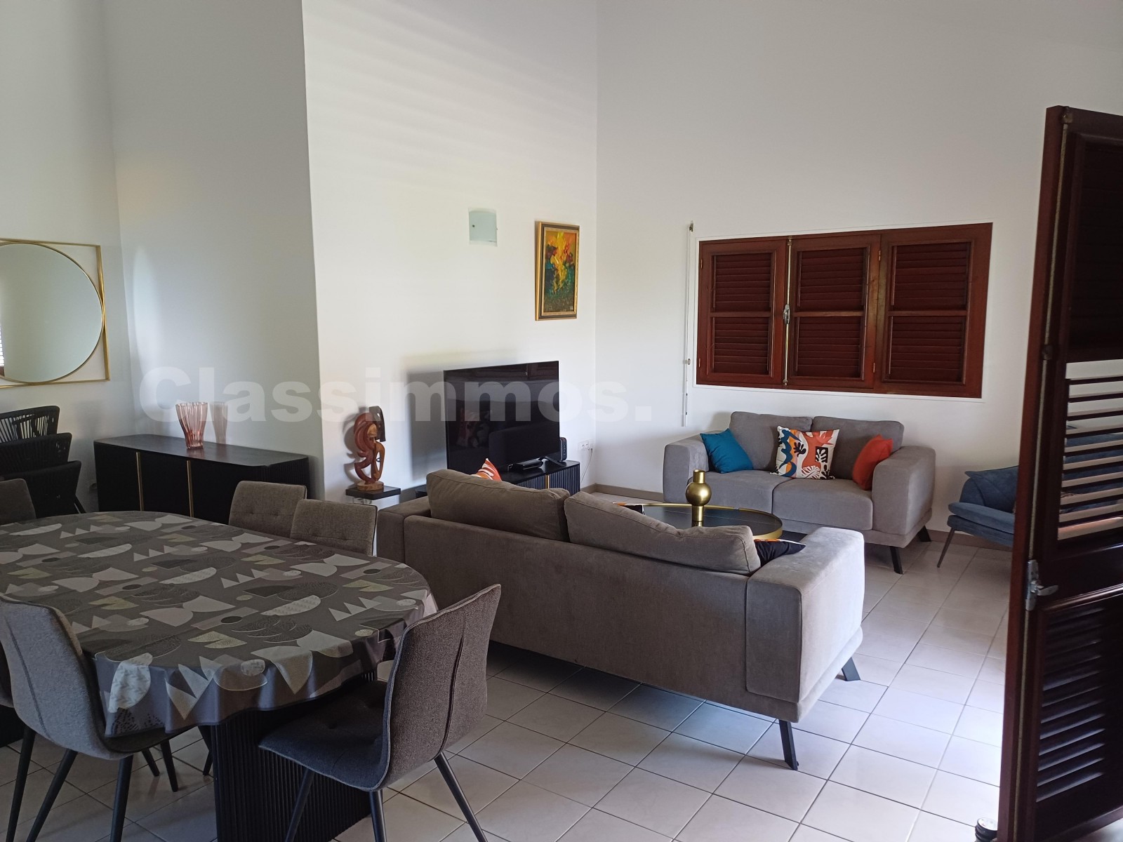 Sur le territoire de la commune du Lamentin, une grande villa de type F6 meublée avec mezzanine, comprenant une entrée, un séjour, un salon , un WC indépendant, une cuisine aménagée avec placards de rangements et appareils électroménagers , 4 chambres climati...