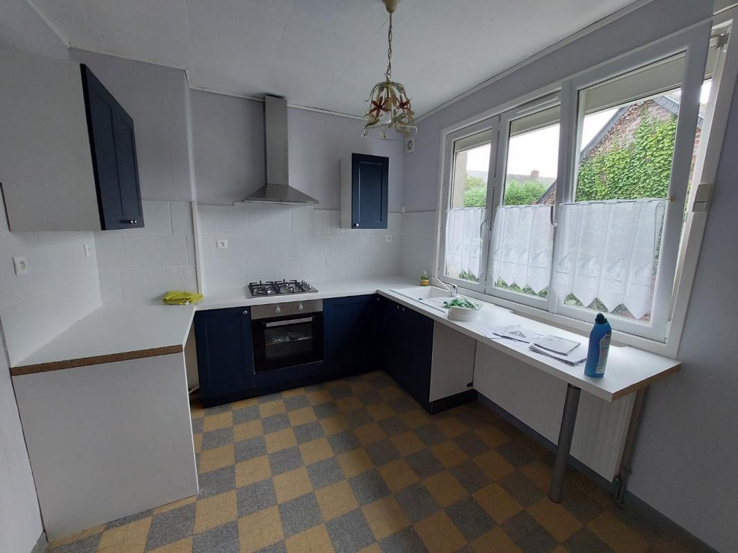 Dans un quartier calme, pavillon disponible à la location à EU comprenant au rez-de-chaussée : une entrée avec penderie, une cuisine aménagée, un séjour lumineux et spacieux, un WC, une chaufferie et un garage pour 2 véhicules.