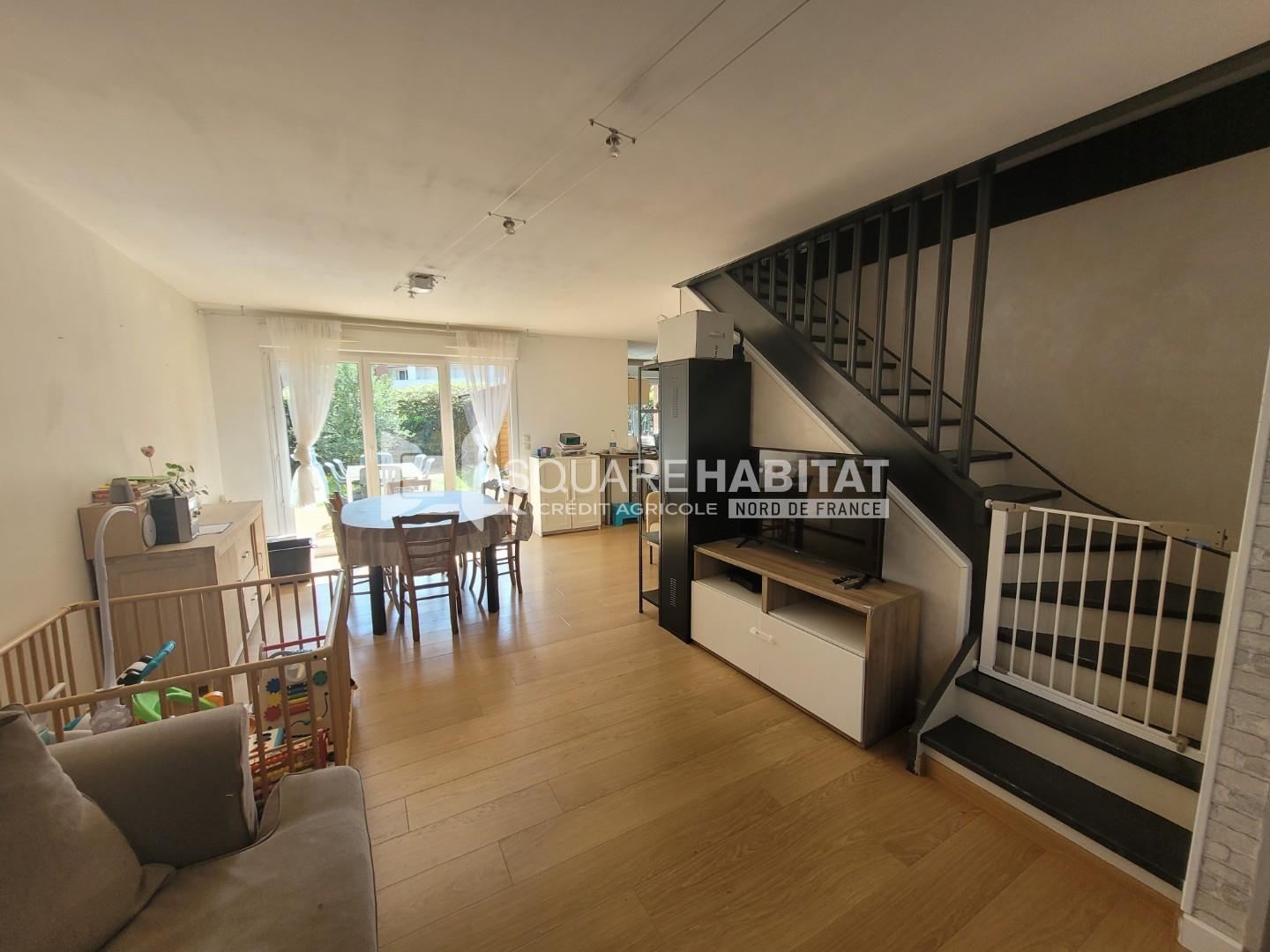 MAISON avec JARDIN et GARAGE comprenant un hall, un salon-séjour ouvert sur cuisine équipée, un cellier à l'étage 3 chambres avec placard de rangement, une salle de bains. Un chalet de jardin. - Les informations sur les risques auxquels ce bien est exposé...