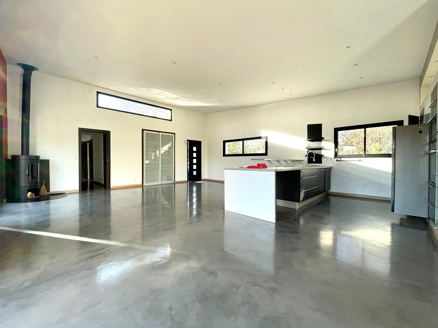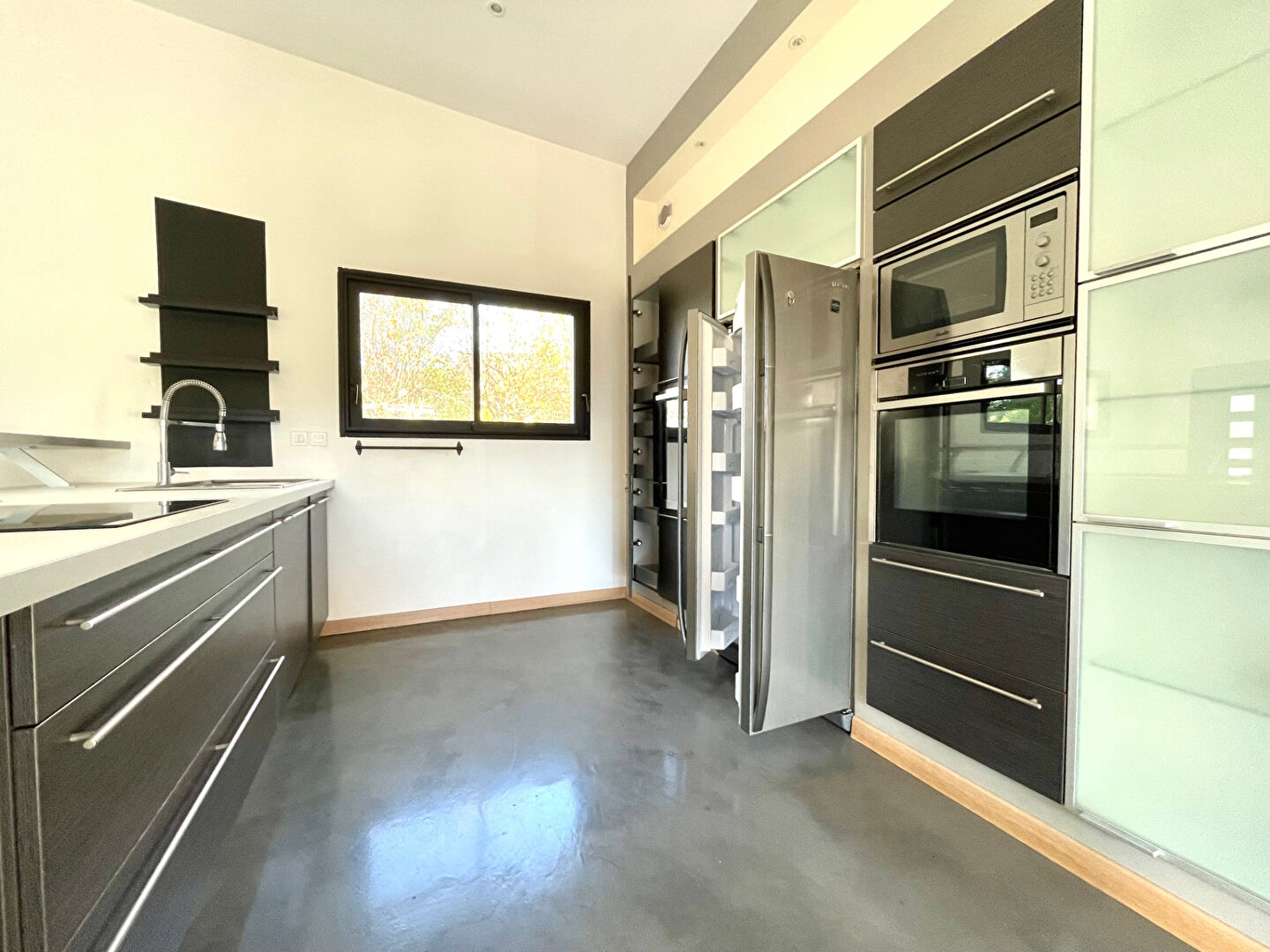 Maison comprenant séjour avec cuisine aménagée équipée (Plaques vitrocéramiques, four, hotte, réfrigér...