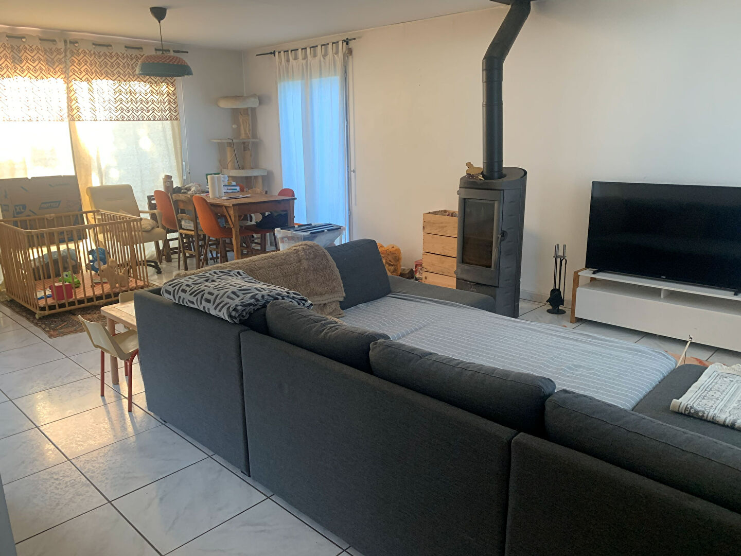 Belle pièce à vivre de 37 m², donnant sur une terrasse en bois, cuisine aménagée et équipée NE...