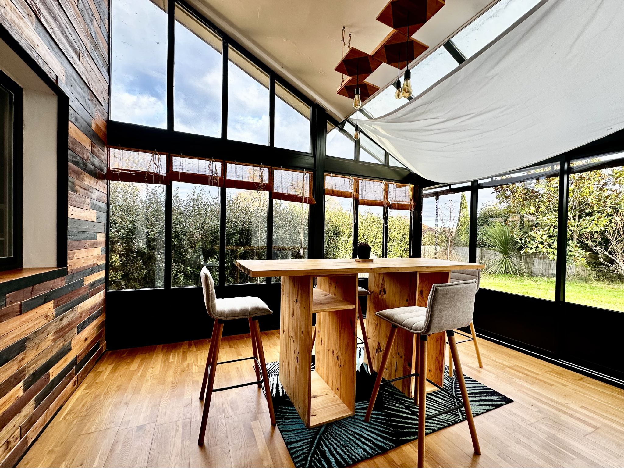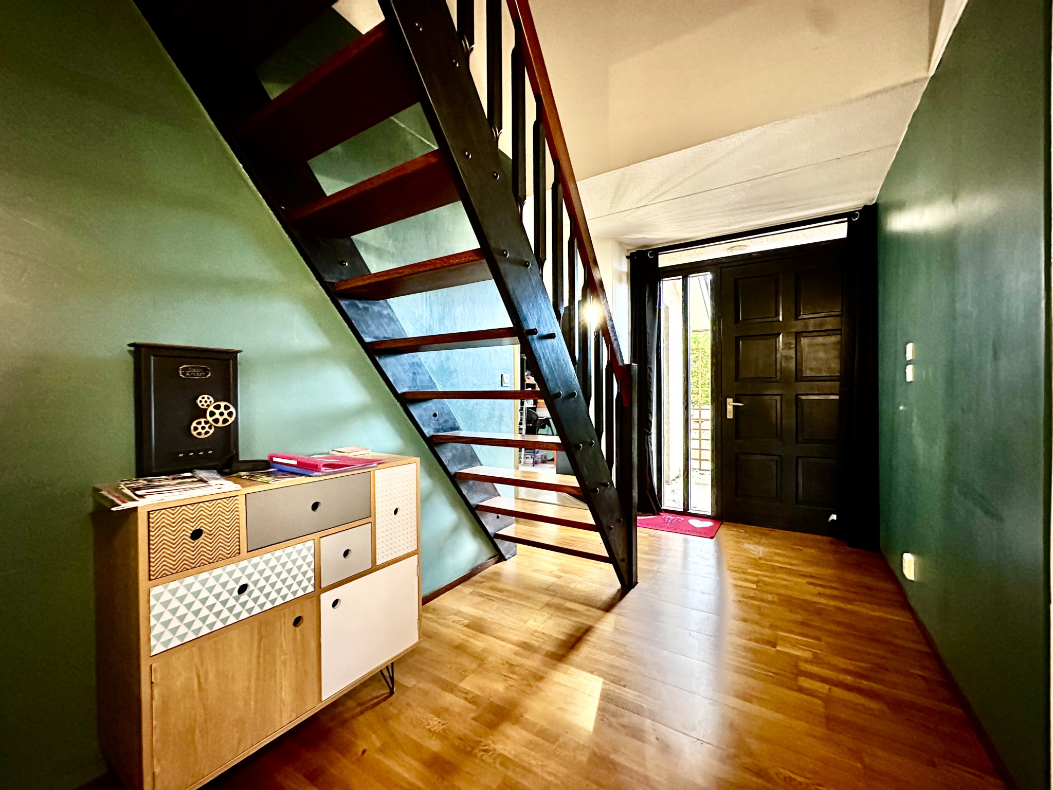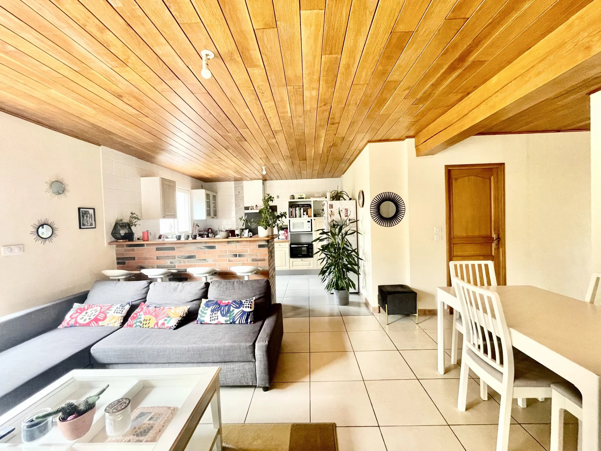 Venez visiter cette maison T3 de caractère : planchers, poutres, briquettes, baies vitrées.