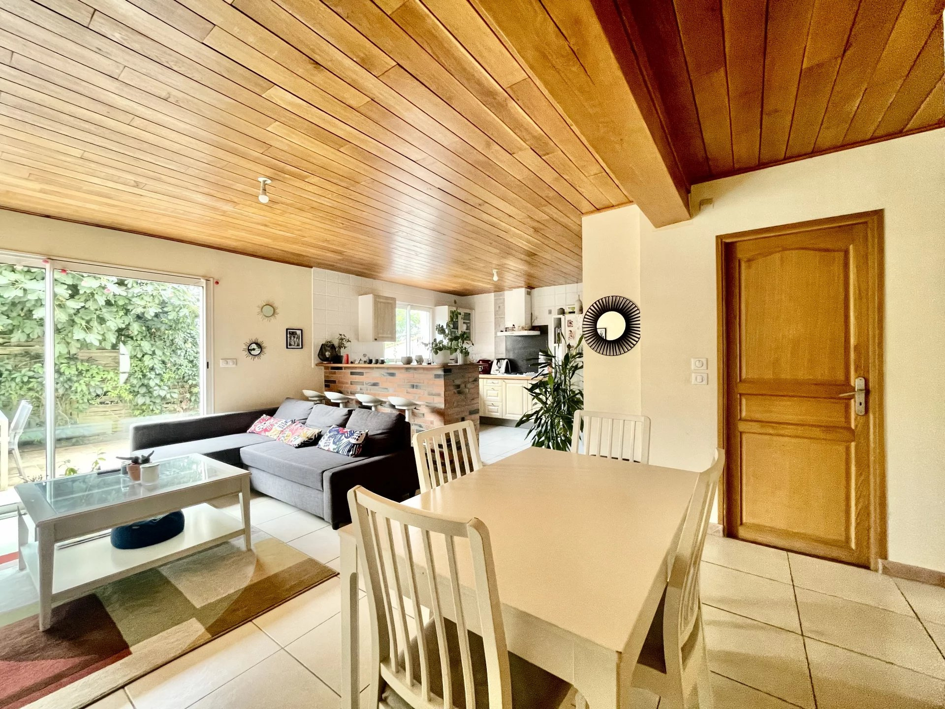 Jolie maison contemporaine de plain pied (mitoyenne par le garage) offrant 92 m² habitables (séjour et cuisine entièrement équipée, 3 chambres dont une suite parentale avec sa...