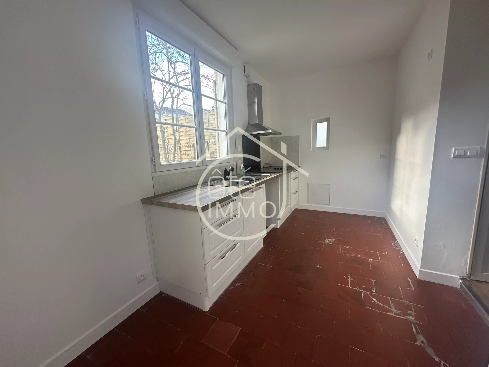 BORDEAUX Caudéran belle échoppe pierre avec jardin de ville et son garage louée meublée, elle est composée d'une entrée, séjour avec cuisine équipée, 1 chambre en mezzanine, salle d'eau et WC.