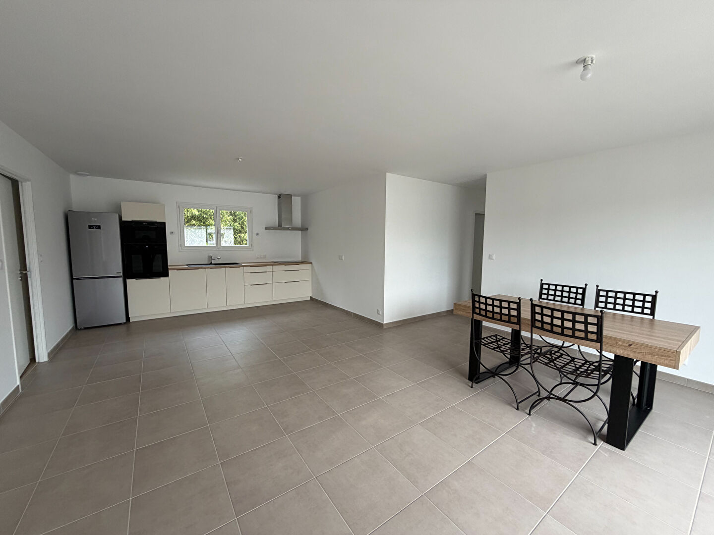 Le Pian Médoc, secteur Louens - Maison neuve meublée à louer, comprenant un salon/cuisine équipée, un cellier, 4 chambres, une salle d'eau, un garage sur un terrain clôturé.
