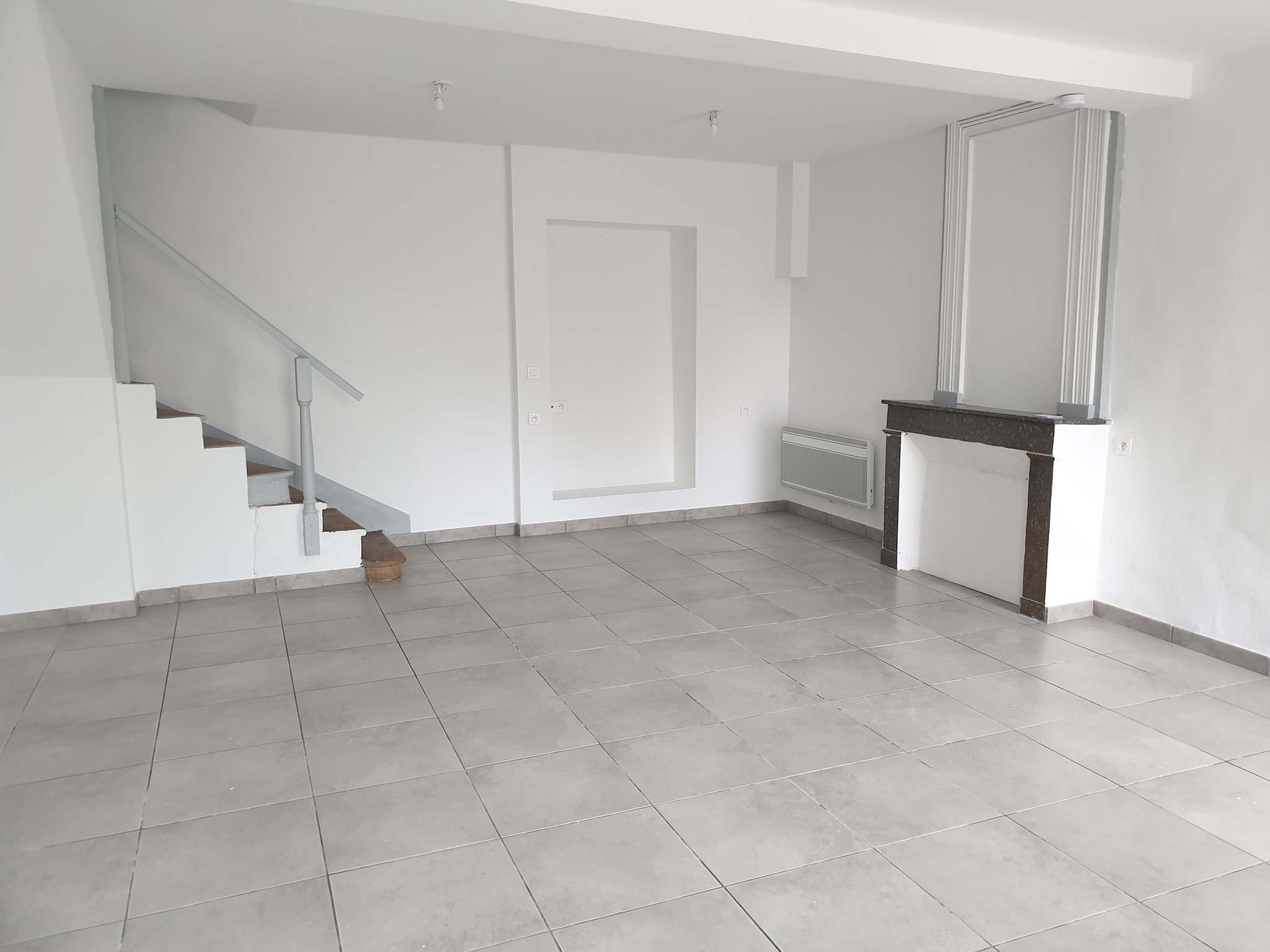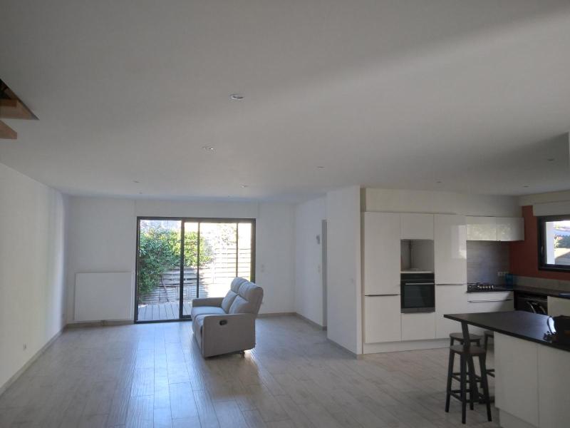 Maison rénovée entièrement T3sur deux niveaux avec terrasse extérieure, composée d'un séjour, cuisine aménagée ouverte, deux chambres. Place de parking. Chauffage climatisation réversible.