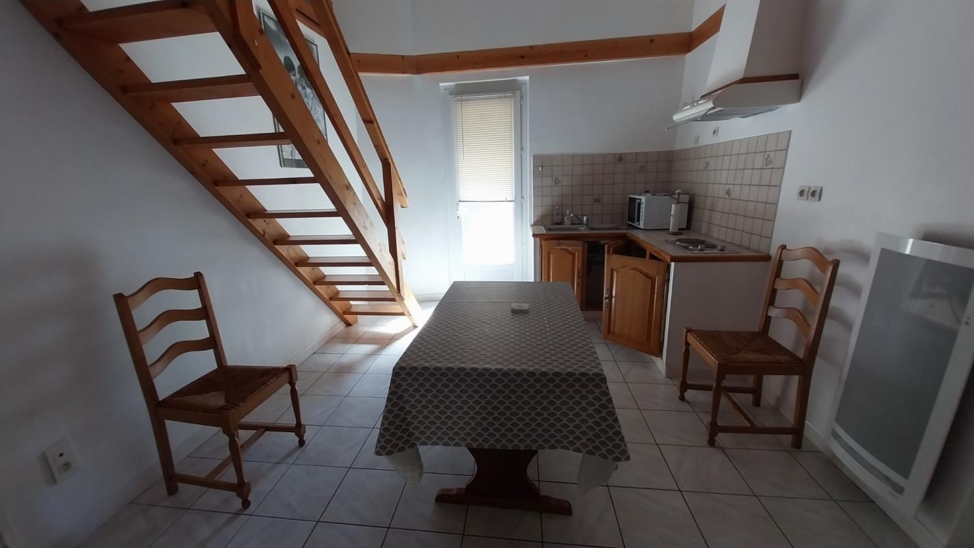 VIEUX BOURG, à deux pas de la Dordogne et sa promenade bucolique, à louer maison de ville non meublée de type 2 comprenant en RDC une pièce à vivre avec coin cuisine aménagé et équipé (plaques de cuisson et hotte), une salle d'...