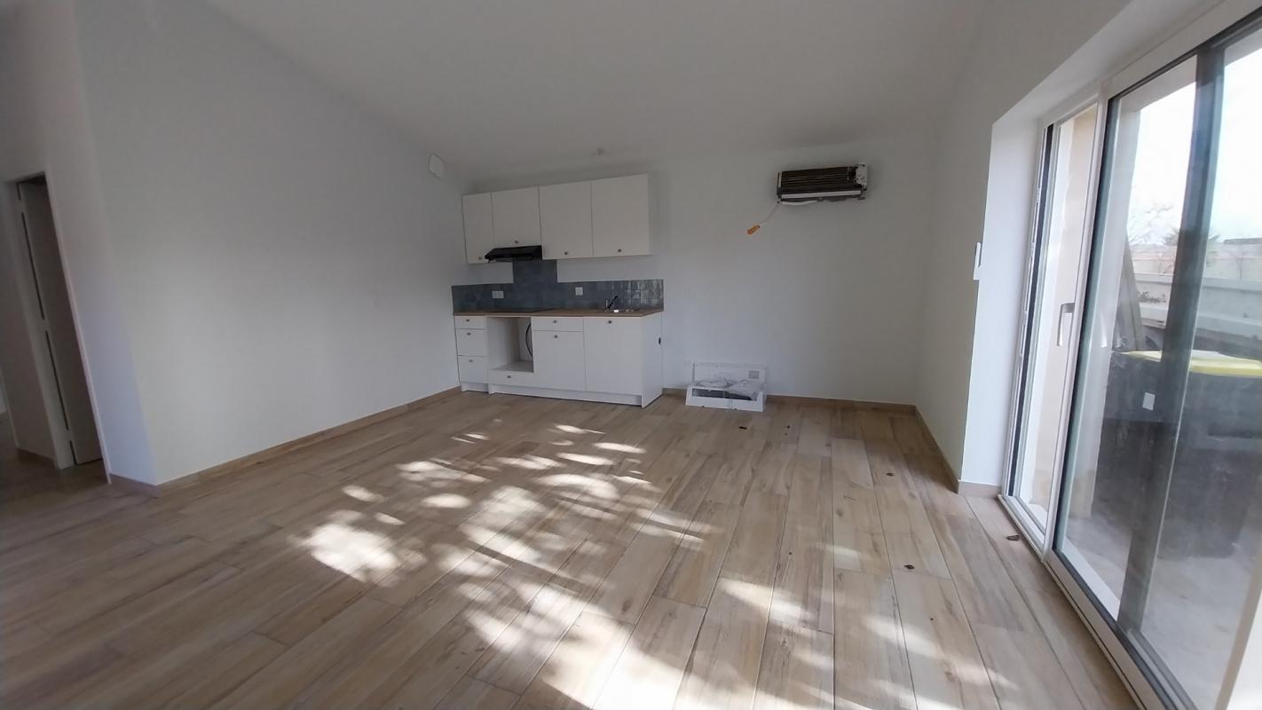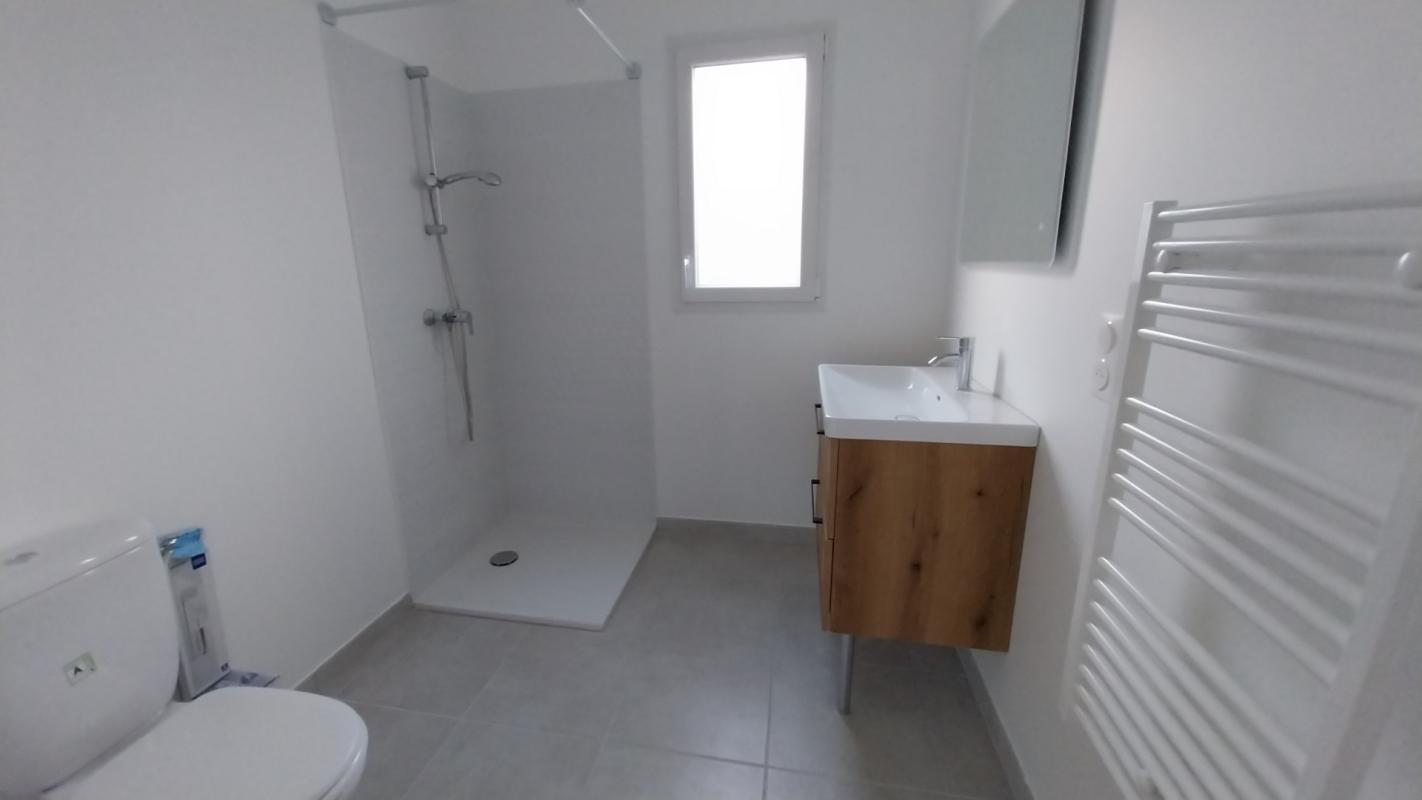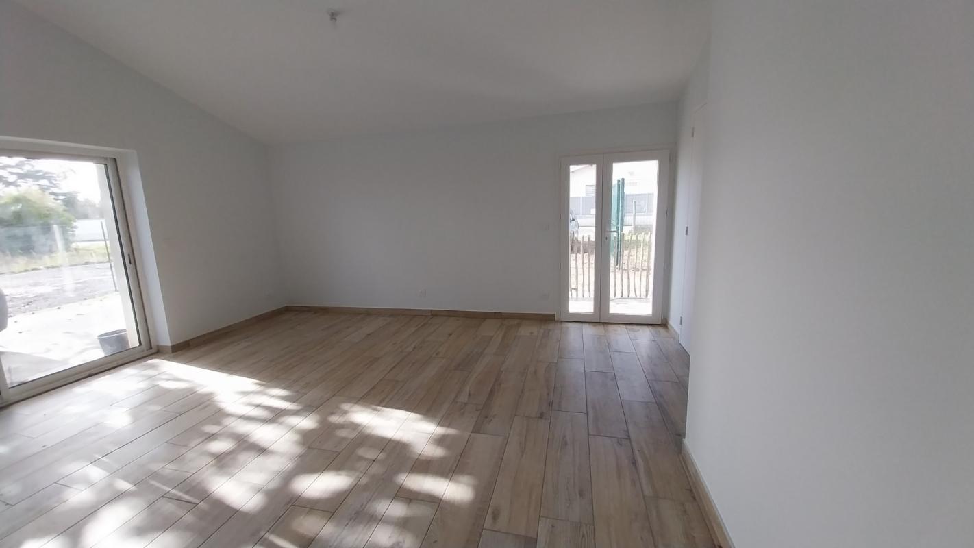 Maison de plain pied type 4 comprenant unn séjour avec cuisine aménagée, trois chambres, salle d'eau, et cours. Disponible de suite.