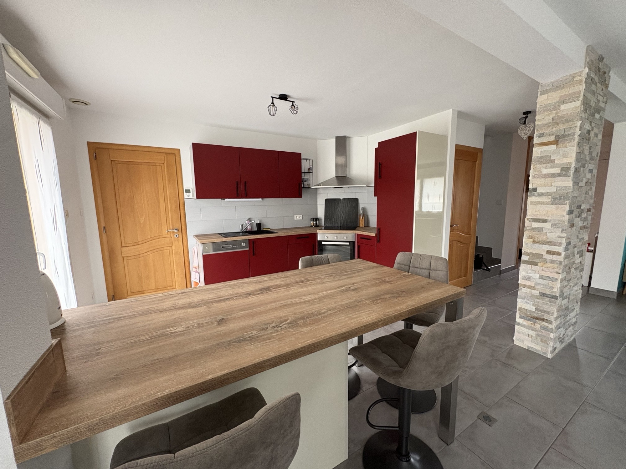 Maison individuelle située à KOGENHEIM, Rue de l'Ill, d'une surface habitable de 203,81m2, comprenant au rez-de-chaussée une entrée avec placard aménagé, un grand espace salon, une cuisine équipée ouverte sur une salle à manger, un cellier, une salle...