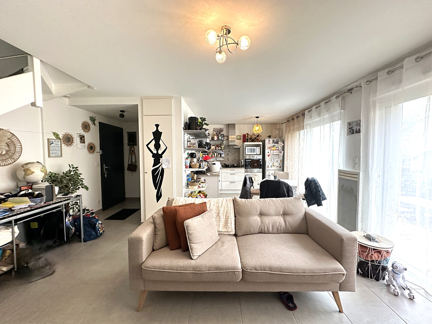Entrée indépendante, donnant sur la cuisine aménagée ouverte sur la salle à manger semi ouvert sur le salon,