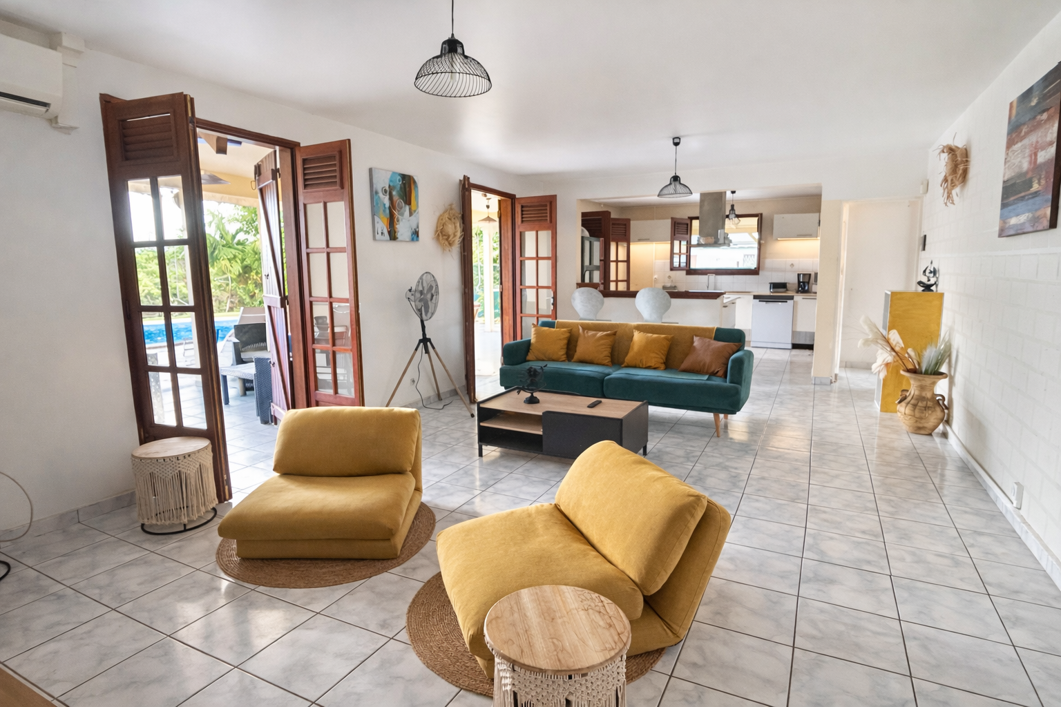 Sur le territoire de la commune du Lamentin, une grande villa de type F6 meublée avec mezzanine, comprenant une entrée, un séjour, un salon , un WC indépendant, une cuisine aménagée avec placards de rangements et appareils électroménagers , 4 chambres climati...