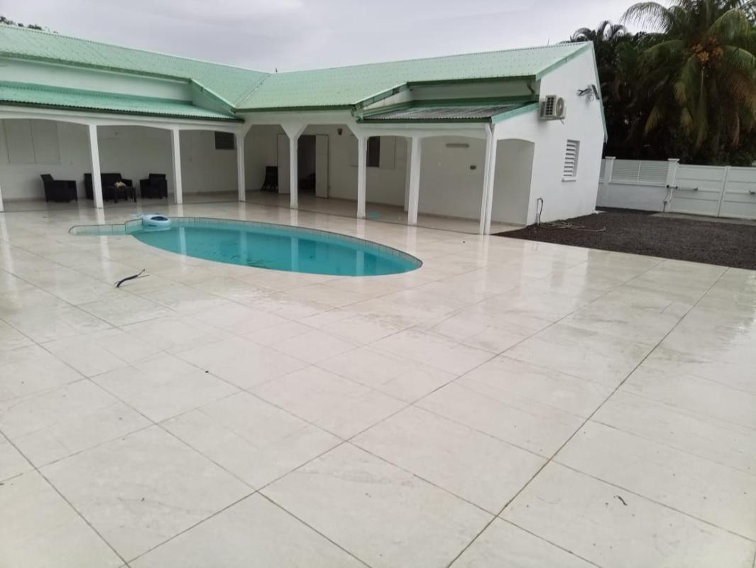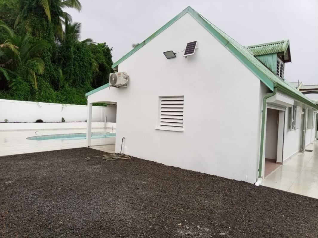 A Louer Bas de villa F5 à GOYAVE Bas de villa d'une surface Habitable de 100 m2 qui comprend : - 1 grand séjour, 1 cuisine aménagée, 1 terrasse buanderie, 4 chambres dont 3 sont climatisées, et une avec salle d'eau/WC, 1 salle d'eau indépendant...