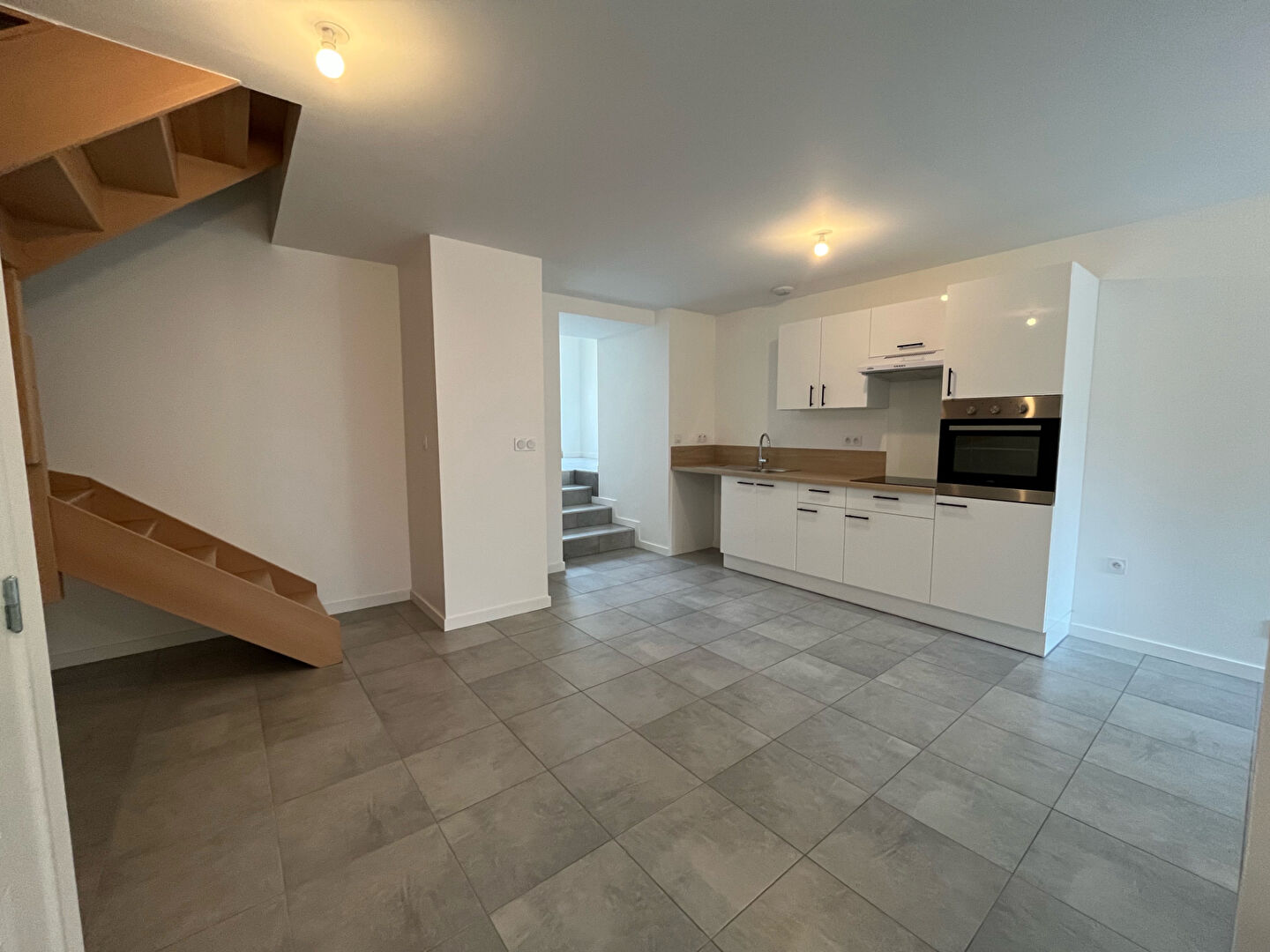 Elle se compose au rez-de-chaussée d'une pièce de vie, cuisine aménagée et équipée et une buanderie.