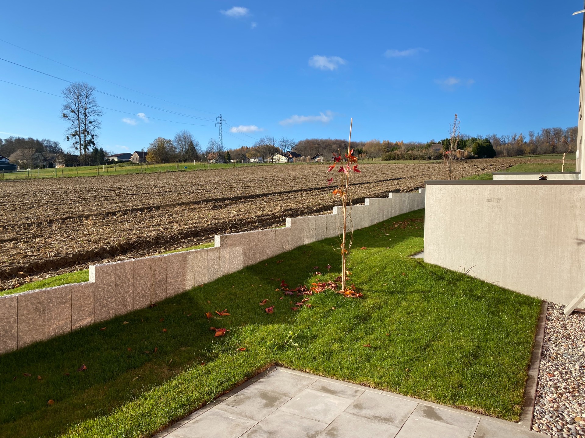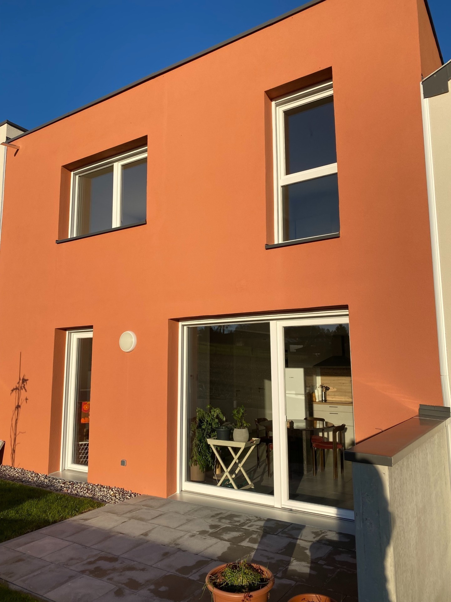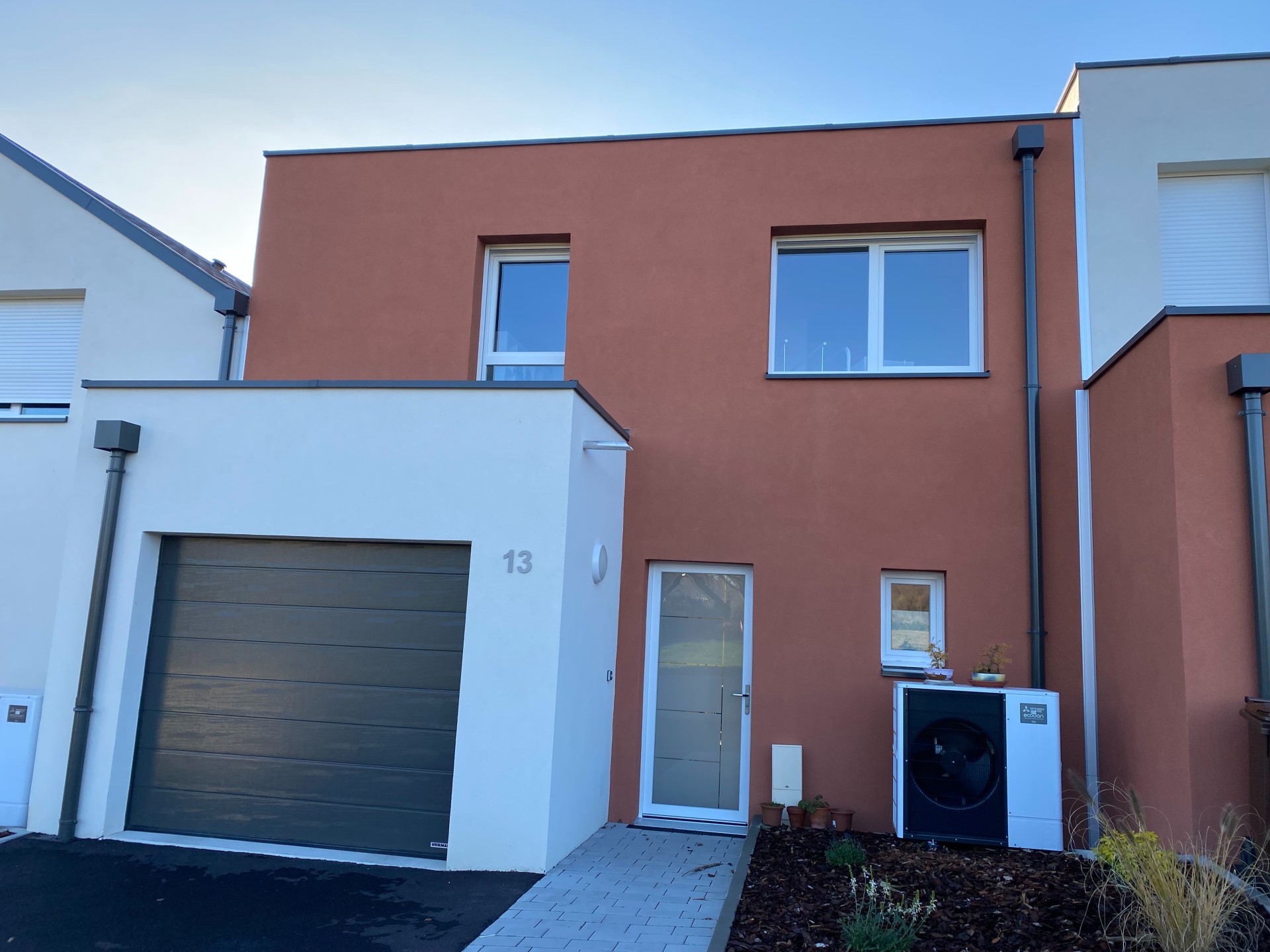 Situation calme au bord des champs, à Bettendorf, maison neuve jumelée de 5 pièces avec 4 chambres, 2 salles de bains, terrasse, petit jardin ,garage, parking.