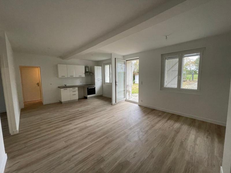 Une cuisine ouverte sur le séjour avec insert, un wc , une salle d'eau , deux chambres
