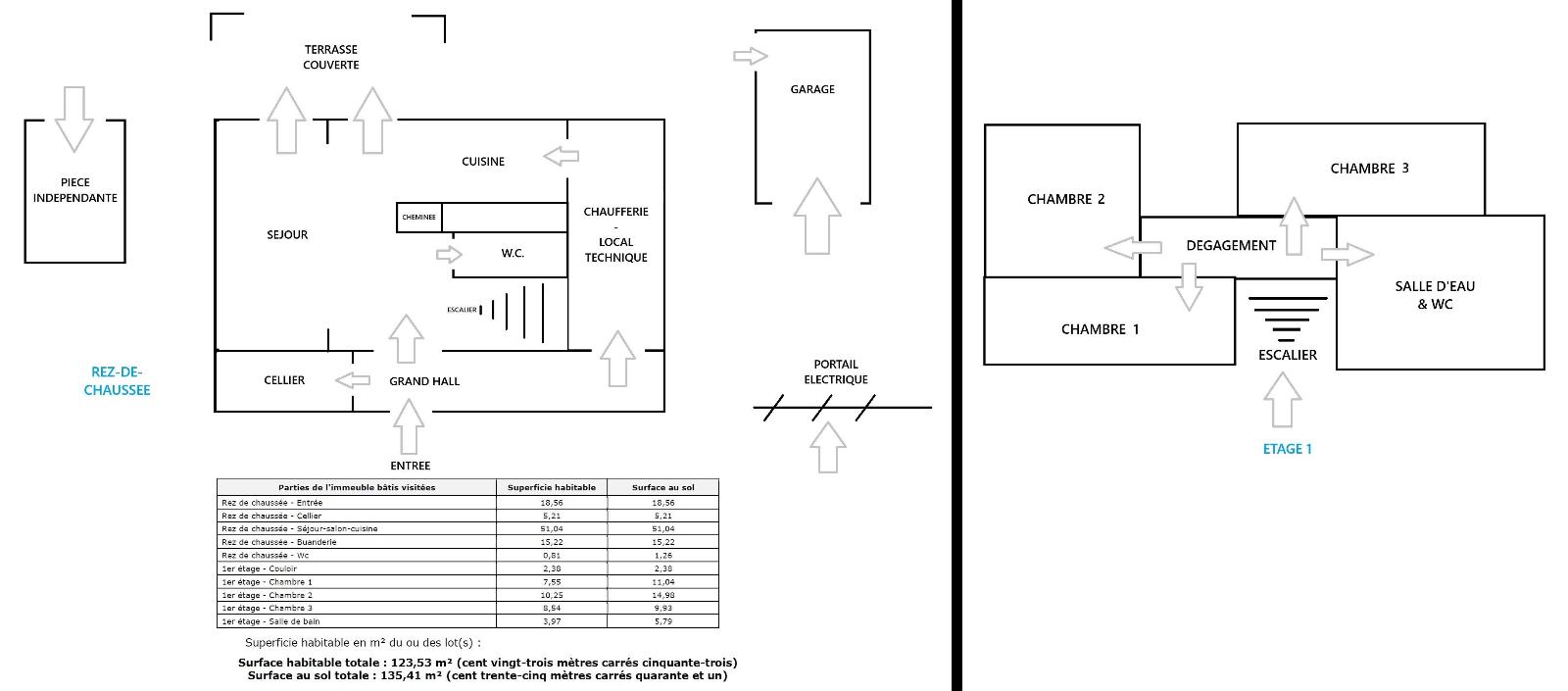 au rez-de-chaussée. Cuisine équipée, grand séjour avec cheminée, 2 salles de