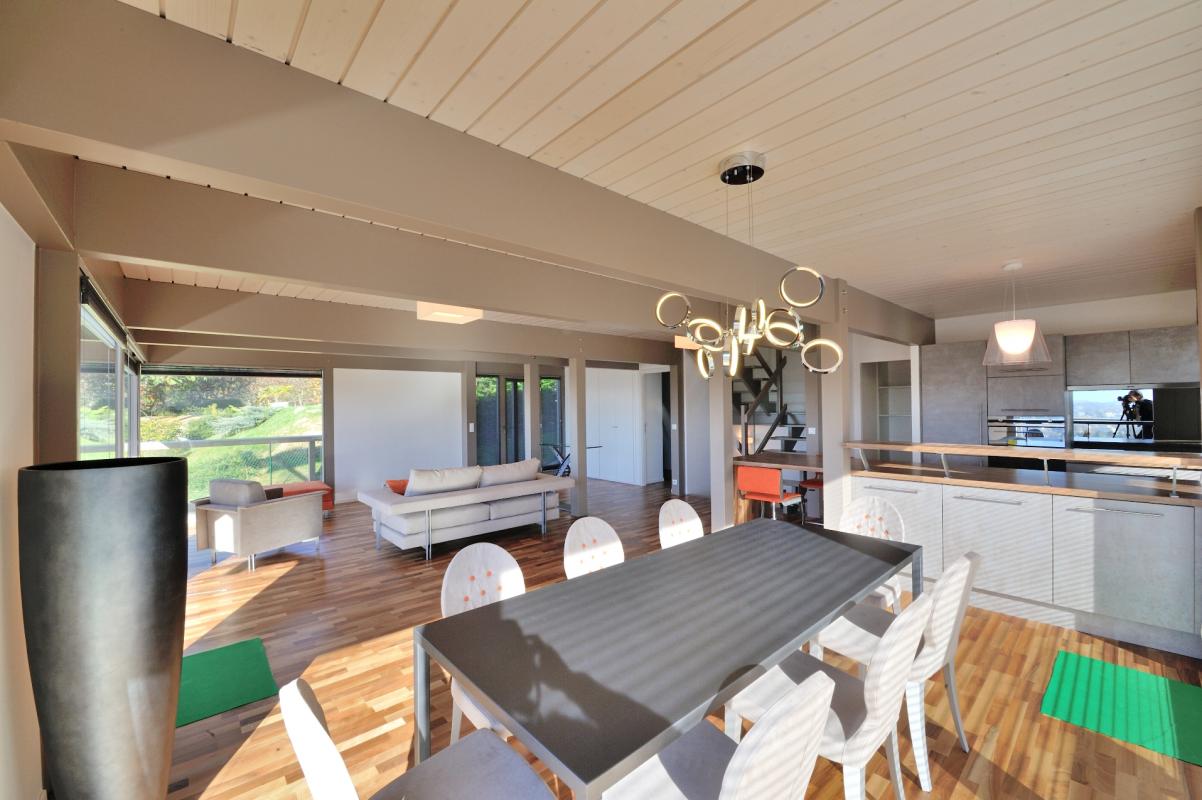 A LOUER, somptueuse Maison individuelle type Ossature Bois, gorgée de lumière d'une surface de 162 m² à ANNECY LE VIEUX, située dans un secteur calme et résidentiel. Elle bénéficie d'une magnifique vue sur le lac et la ville d'ANNECY. Cette vil...