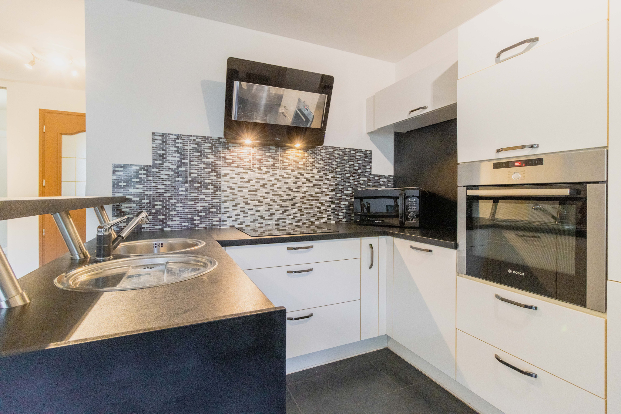 Au rez-de-chaussée : une cuisine équipée (four, plaque induction, h...