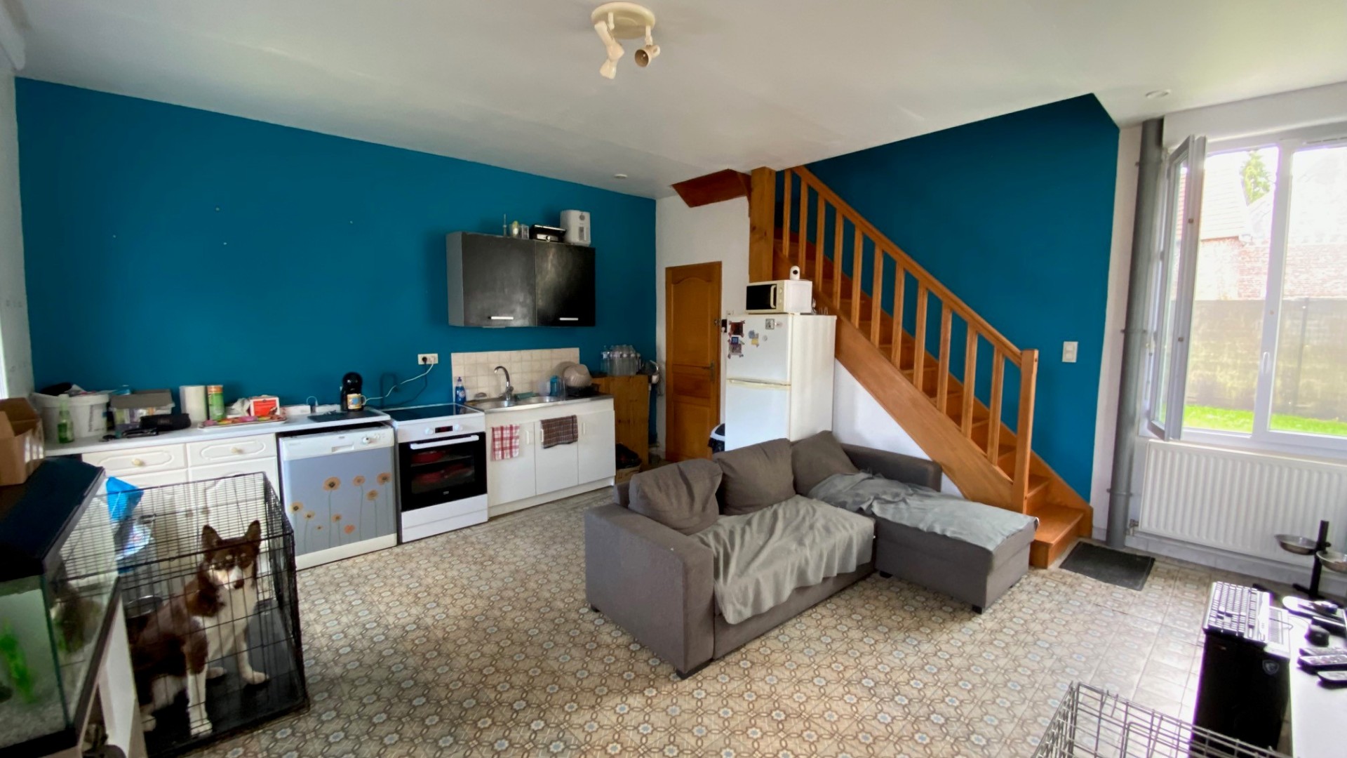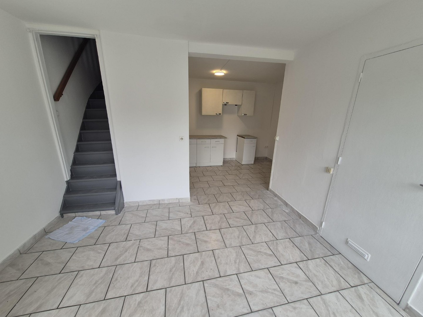 CHAUNY. A deux pas du lycée et du centre ville. Agréable maison pour jeune ou personne seule, comprenant une pièce de vie ouverte, une laverie, un wc. A l'étage, un espace nuit avec une salle d'eau. Loyer 580?. Libre de suite.