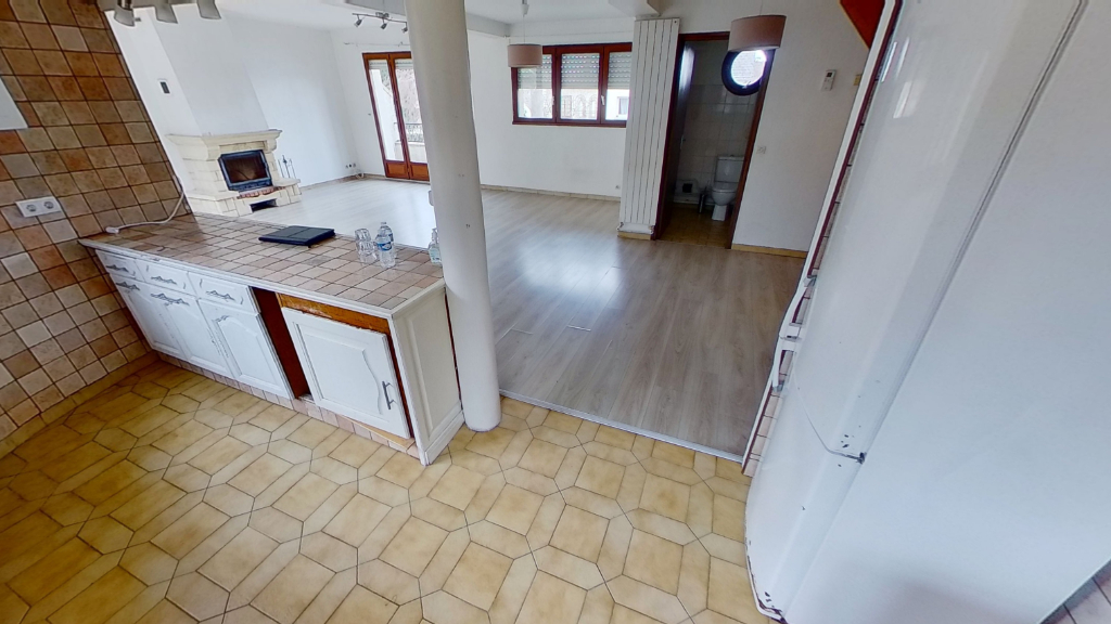 au Rez de chaussée : 1 grand double séjour avec cuisine aménagée et équipée, un accès au sous sol