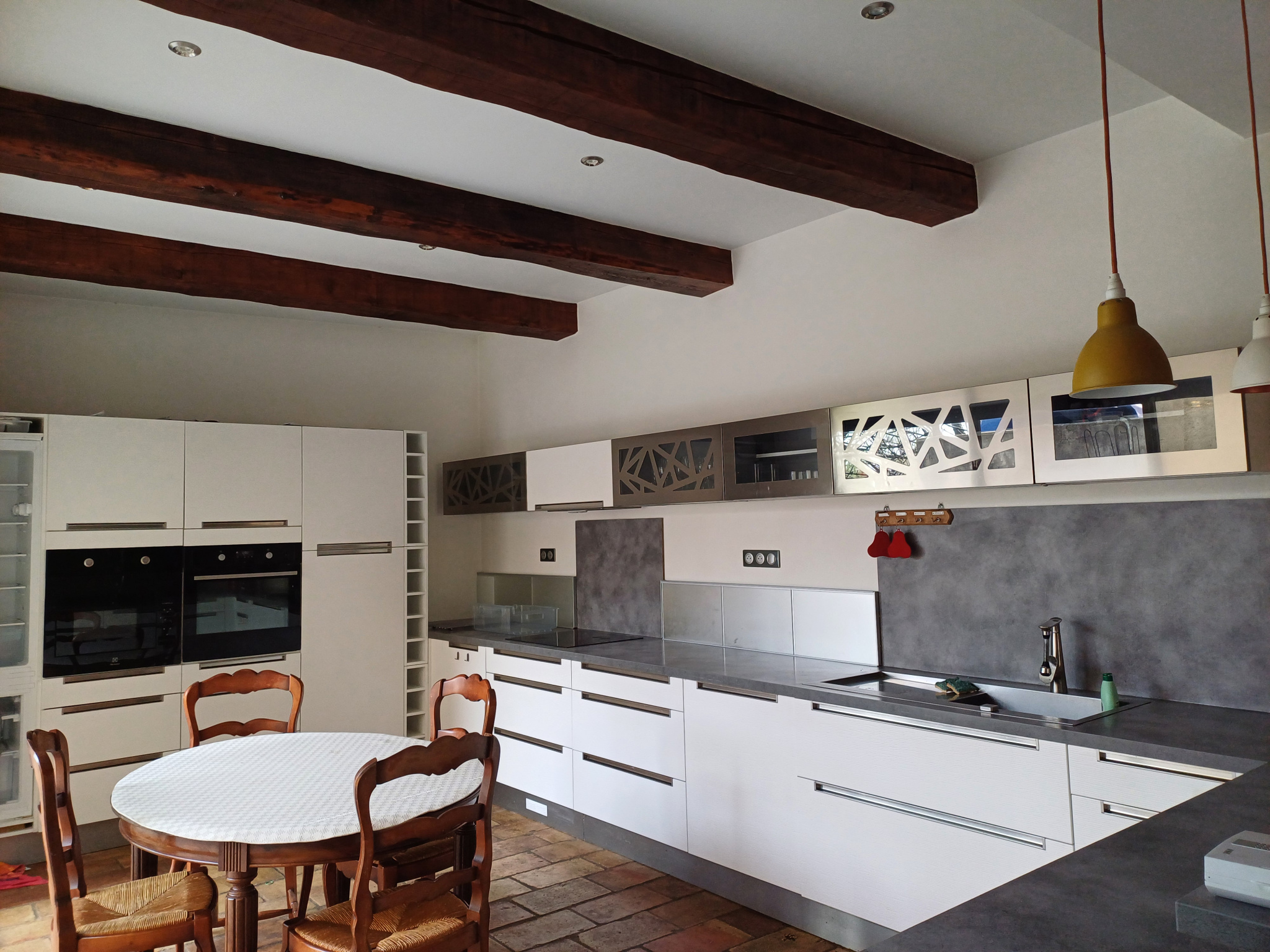 Lumineuse et agréable, vous pourrez profiter de sa grande pièce de vie de plus de 45 m2 avec coin cuisine ouverte aménagée et équipée.