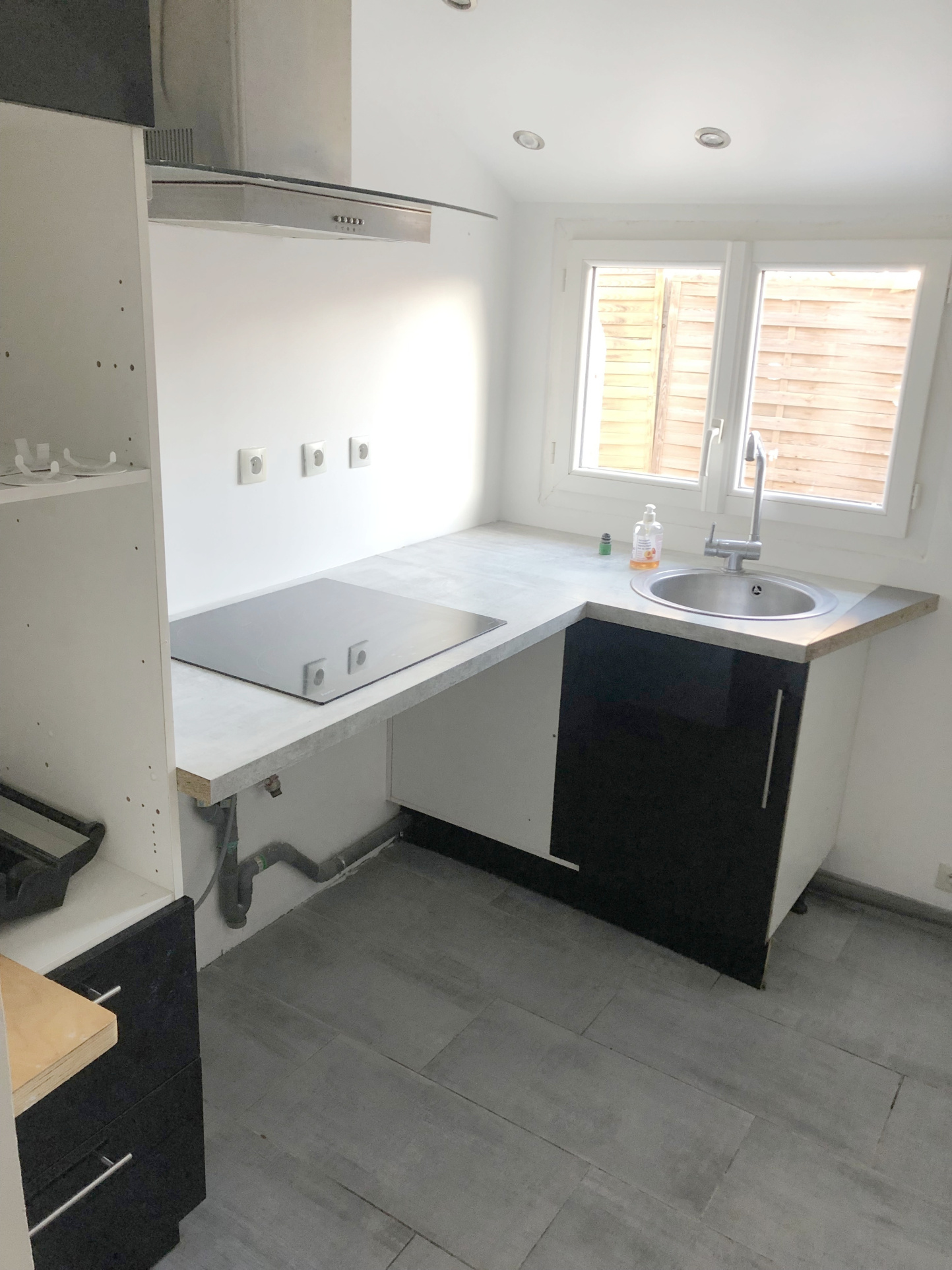 - Pièce principale lumineuse donnant directement accès à la cuisine séparée aménagée (mob...