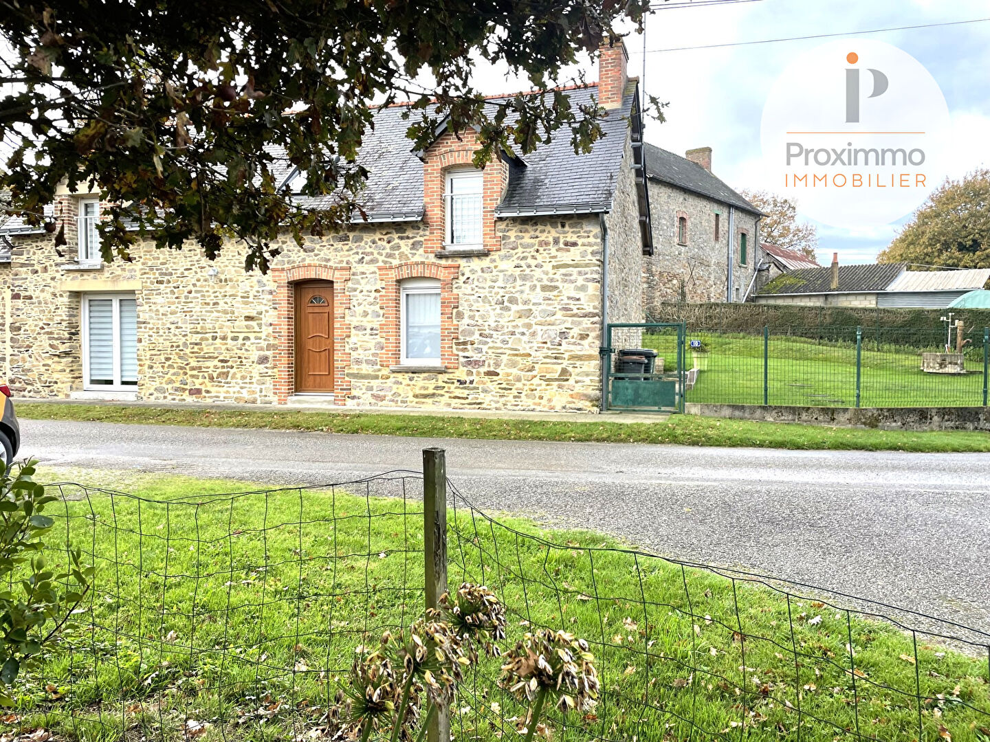 Maison, située dans le bourg de Sens de Bretagne, comprenant au RDC : une pièce de vie avec cuisine aménagée et équipée, deux chambres, salle de bains, WC. A l'étage : une chambre, salle d'eau/WC. Chau...