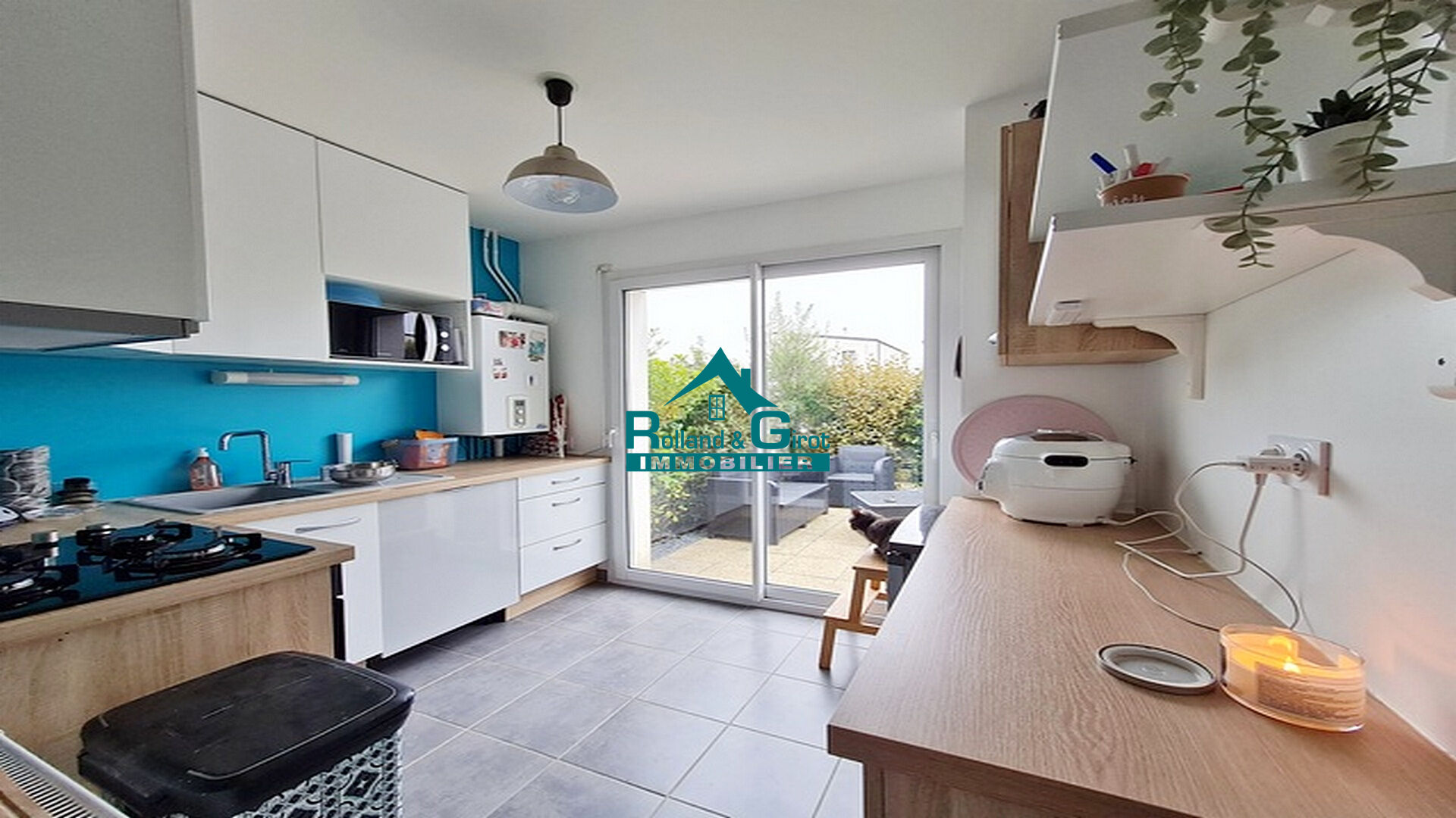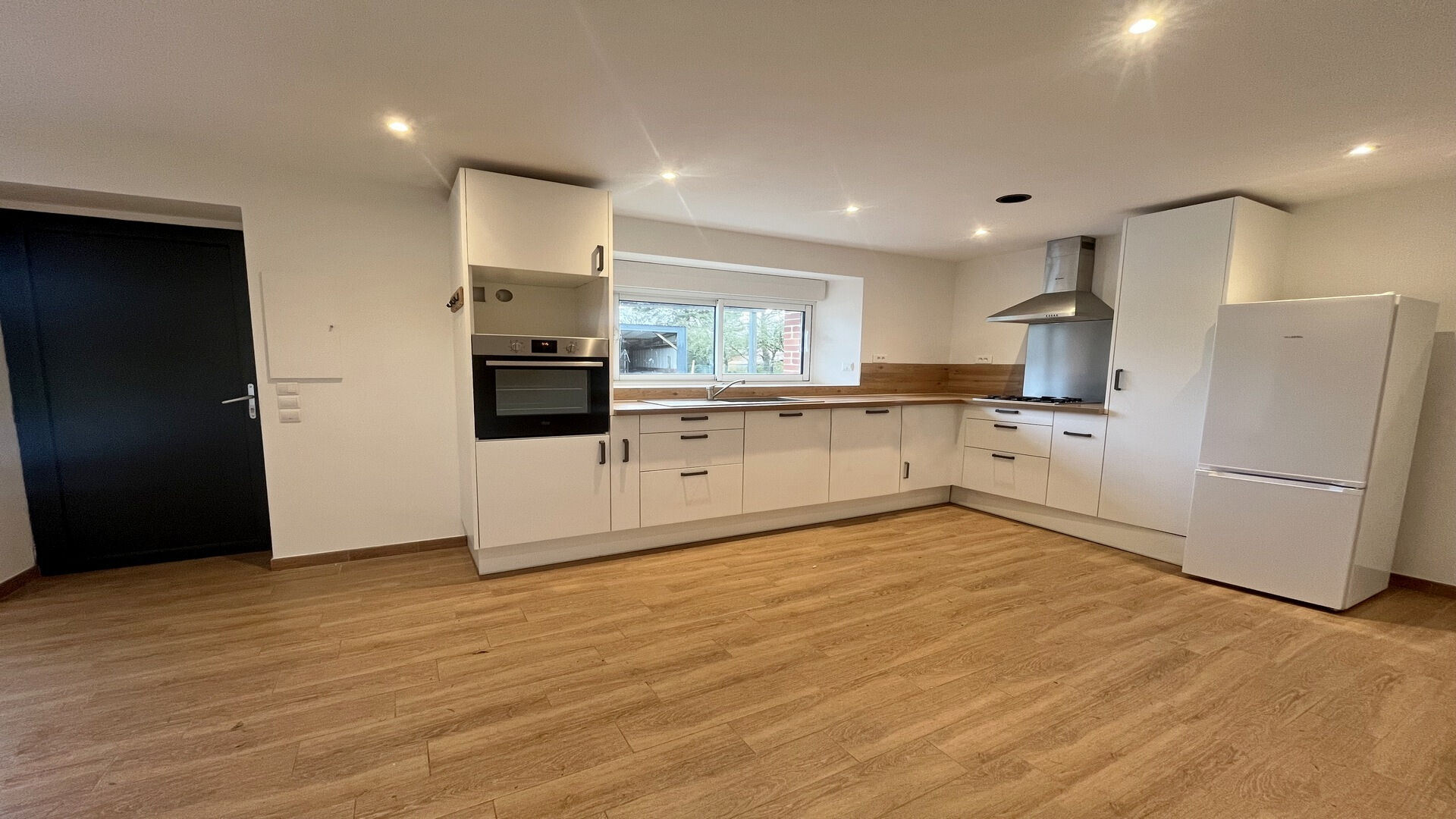 Elle se compose d'une entrée, d'une cuisine aménagée/équipée (four, hotte, plaque, lave-vaisselle, réfrigéra...