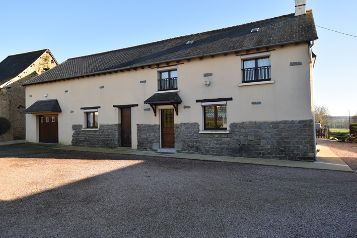 LE CROUAIS En campagne, dans un hameau. Une longère comprenant une cuisine aménagée et équipée ouverte sur un salon séjour avec cheminée, une buanderie, une salle de douches. A l'étage 3 chambres, une salle de bains. Jardin. Cour devant. Grand garage. Dép...