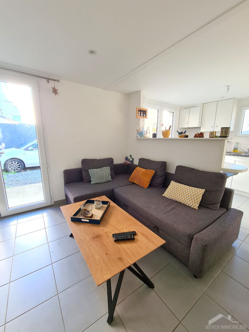 Jolie maison de bourg, louée meublée, entièrement rénovée avec goût en 2024 , d'une superficie de 37.60 m² habitables (50m² au sol), comprenant :