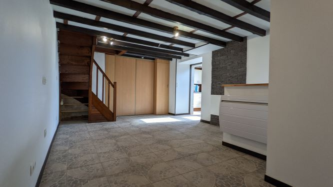 REDON - En plein centre ville, maison de type2 offrant entrée sur pièce de vie avec coin cuisine aménagée et équipée. A l'étage: une chambre, salle d'eau avec wc.