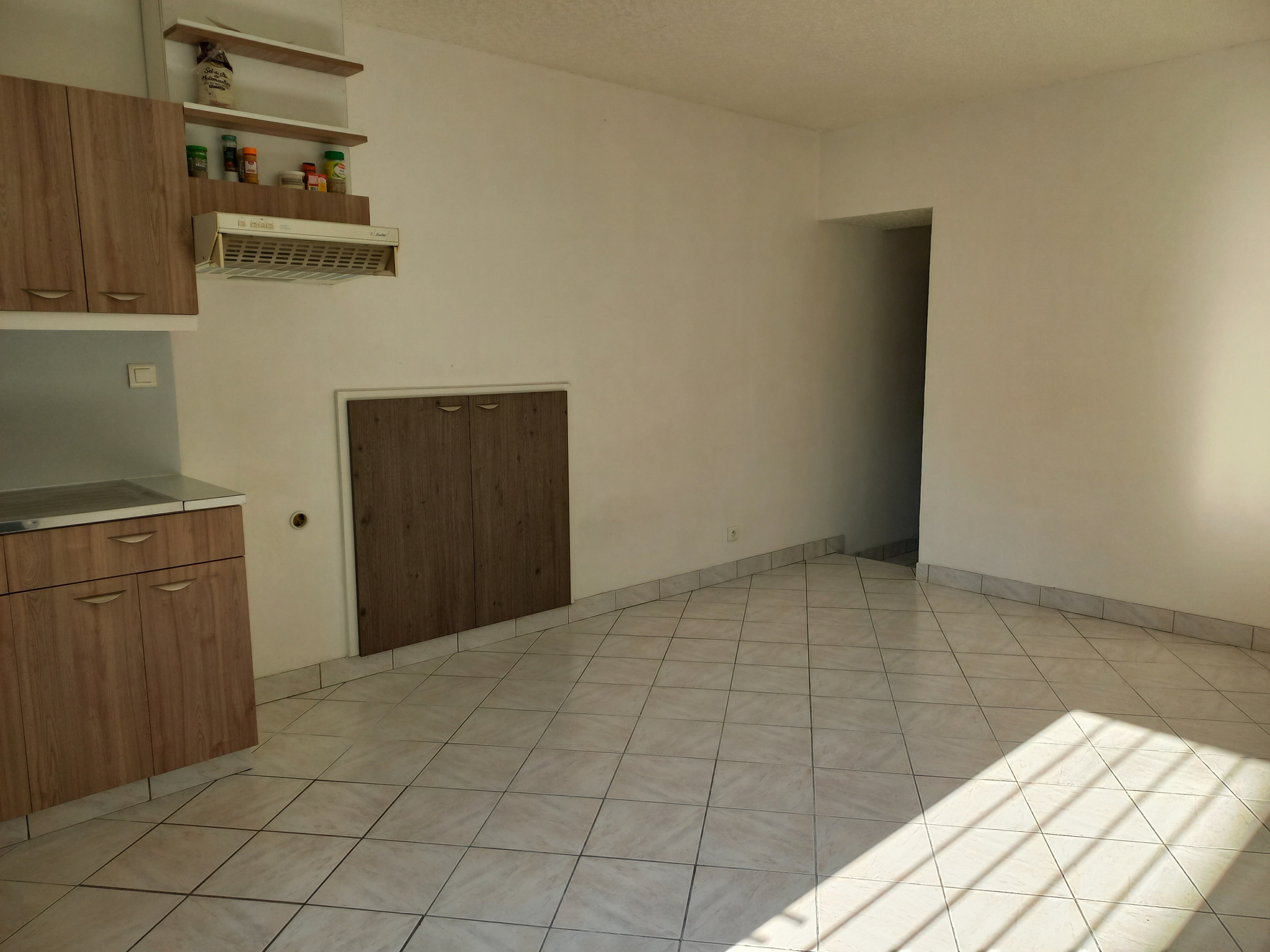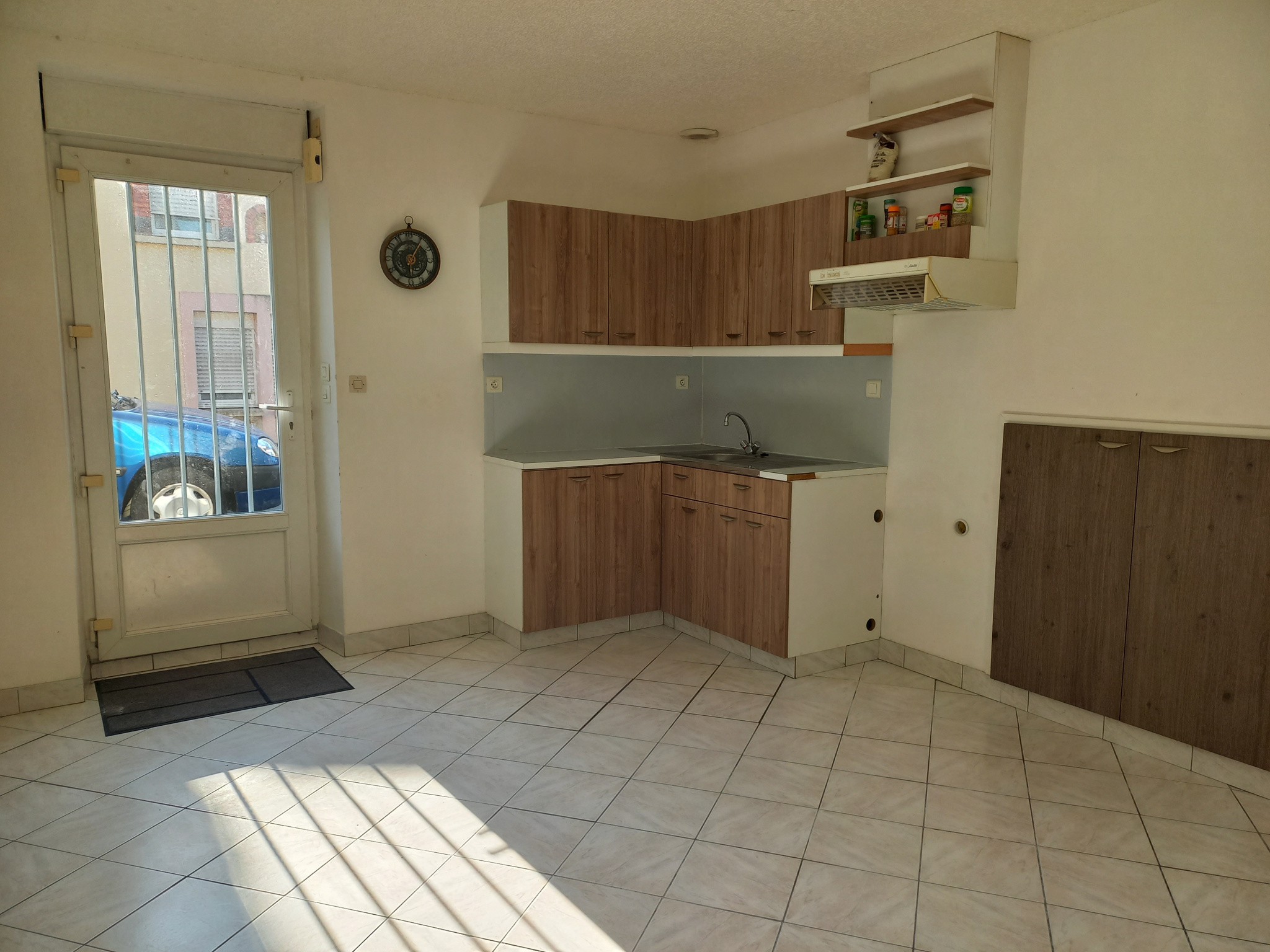 Exclusivité Jolie maison T3 quartier calme comprenant au rez de chaussée une pièce de vie avec coin cuisine aménagée et équipée (plaque, hotte, four), un WC.